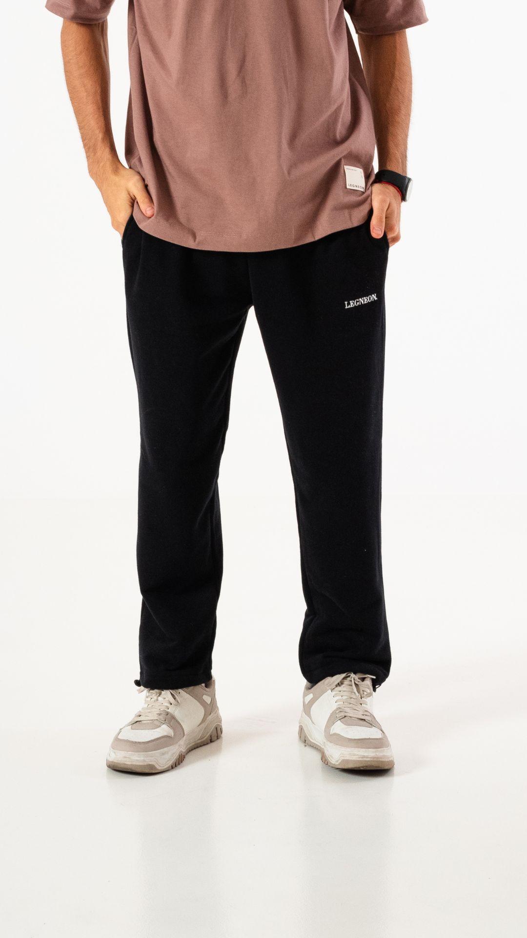 Pantalon unisex de algodón rústico premium con cordon elastico regulable, bolsillos laterales y bordado.