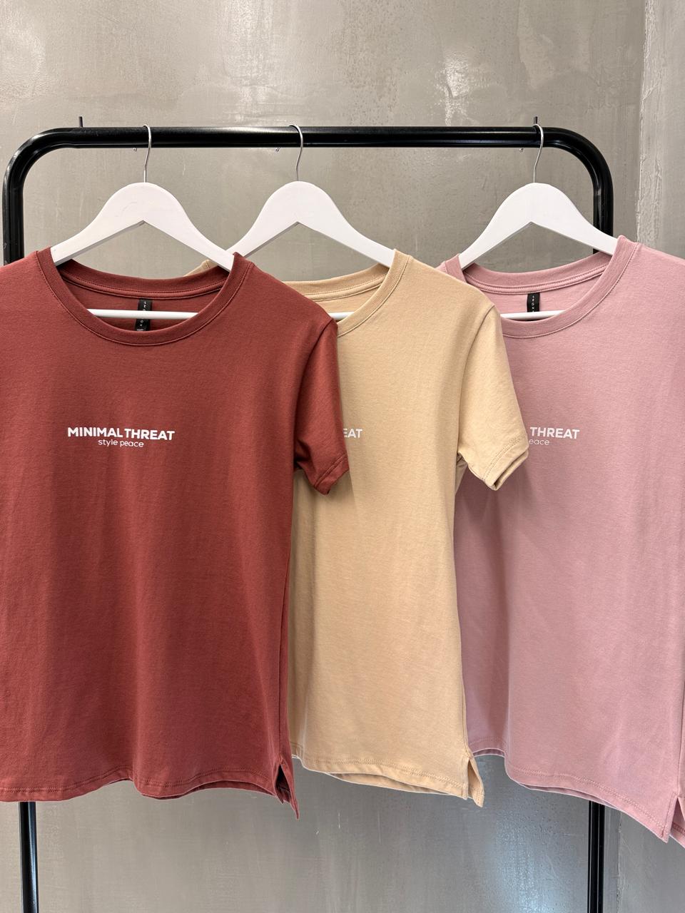 Remera estampada en tela Jersey 100% algodón, cuello redondo y pequeños tajos laterales.