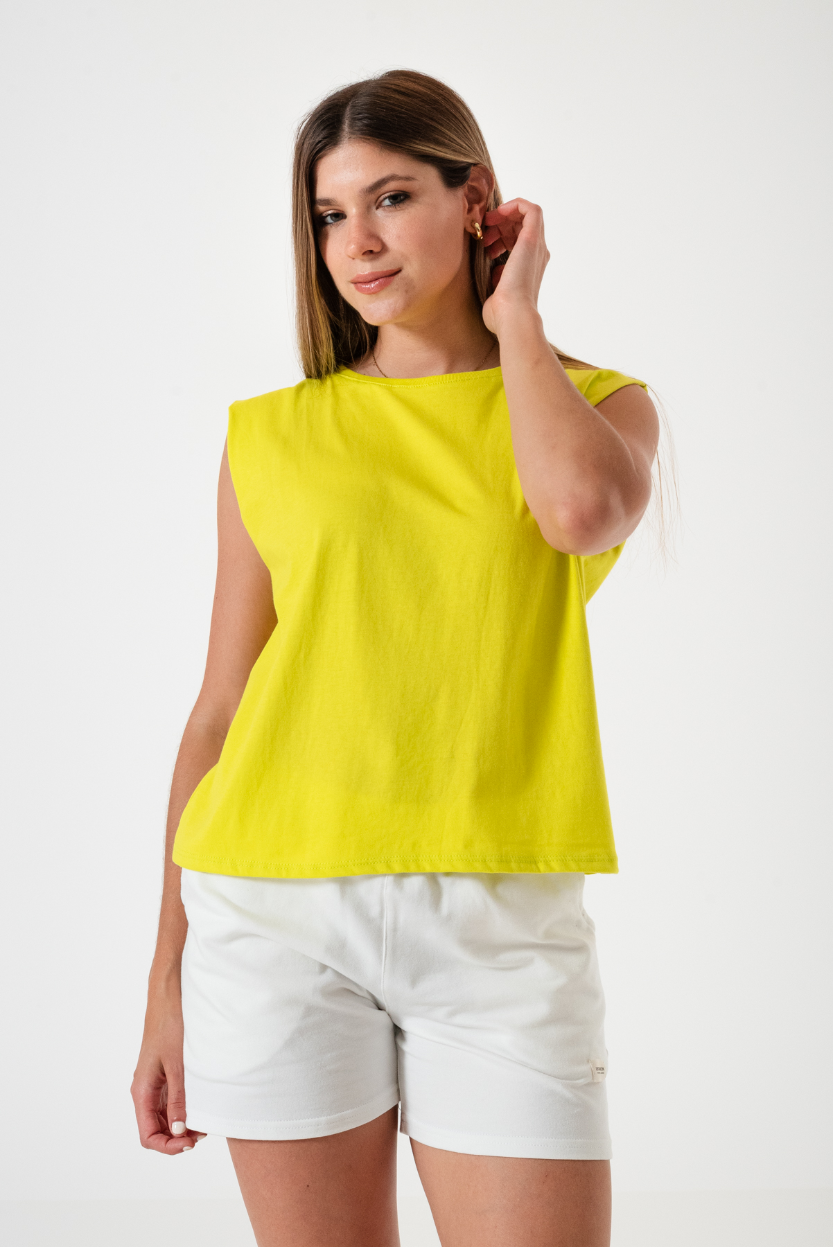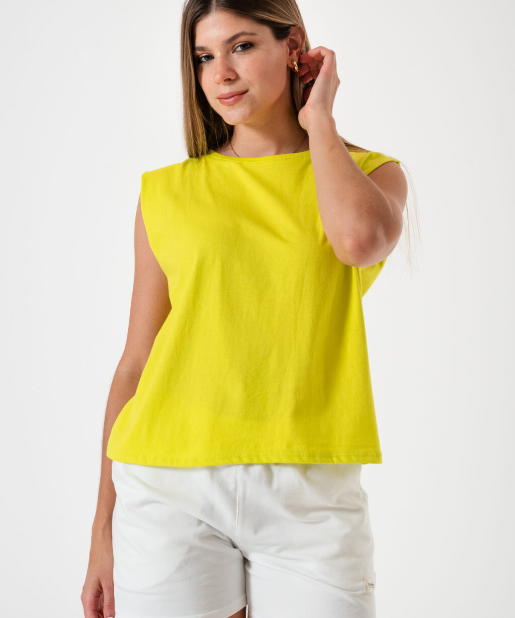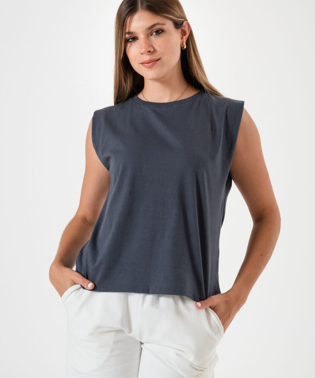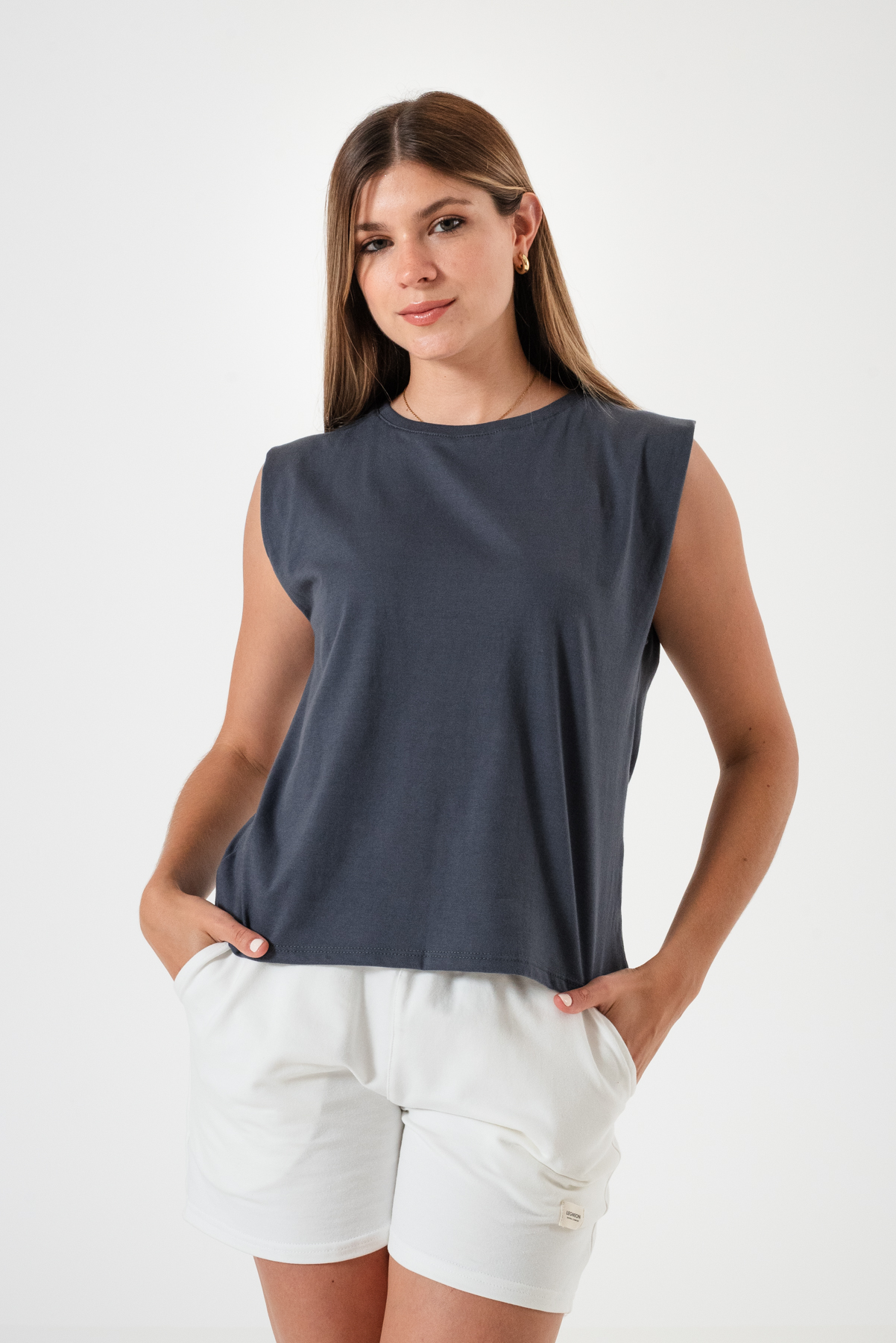 Remera sin manga en tela Jersey 100% algodón, cuello redondo