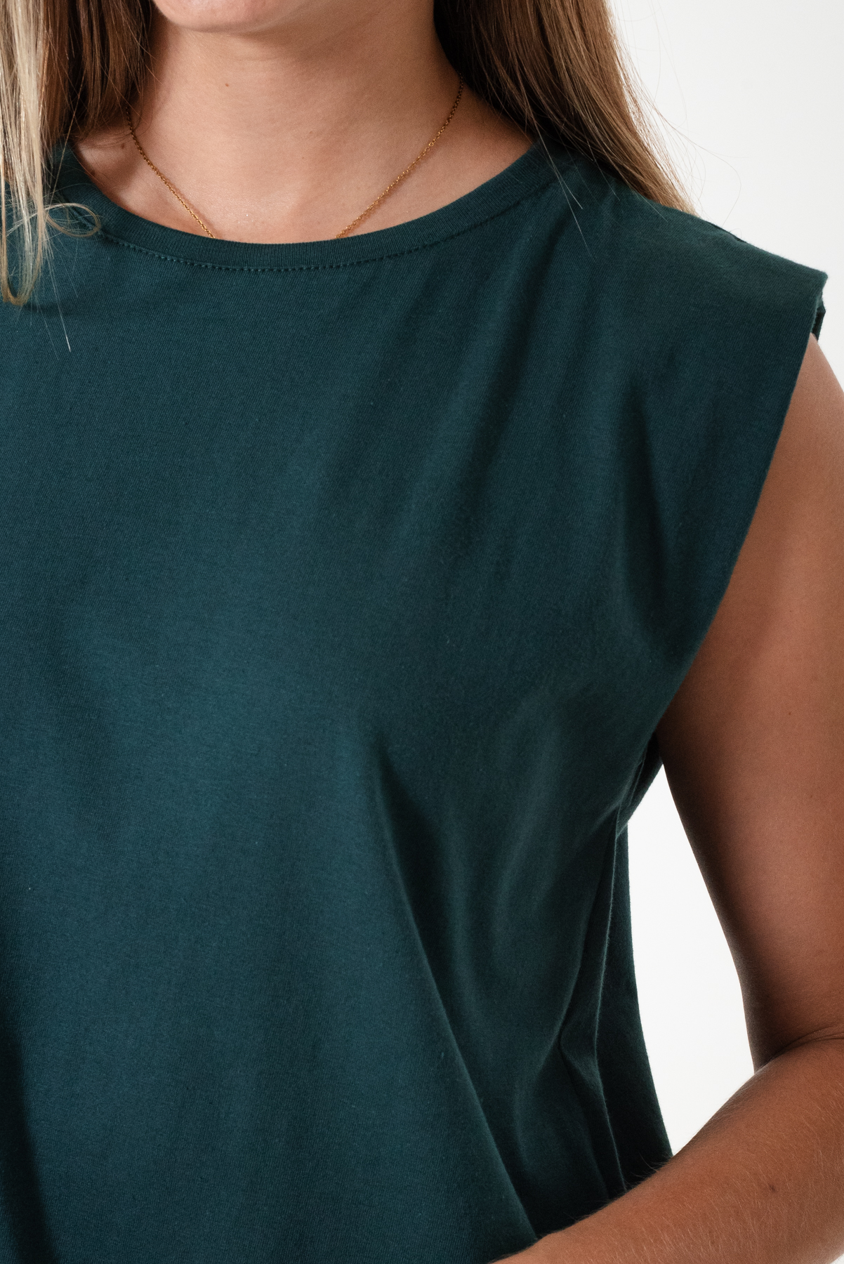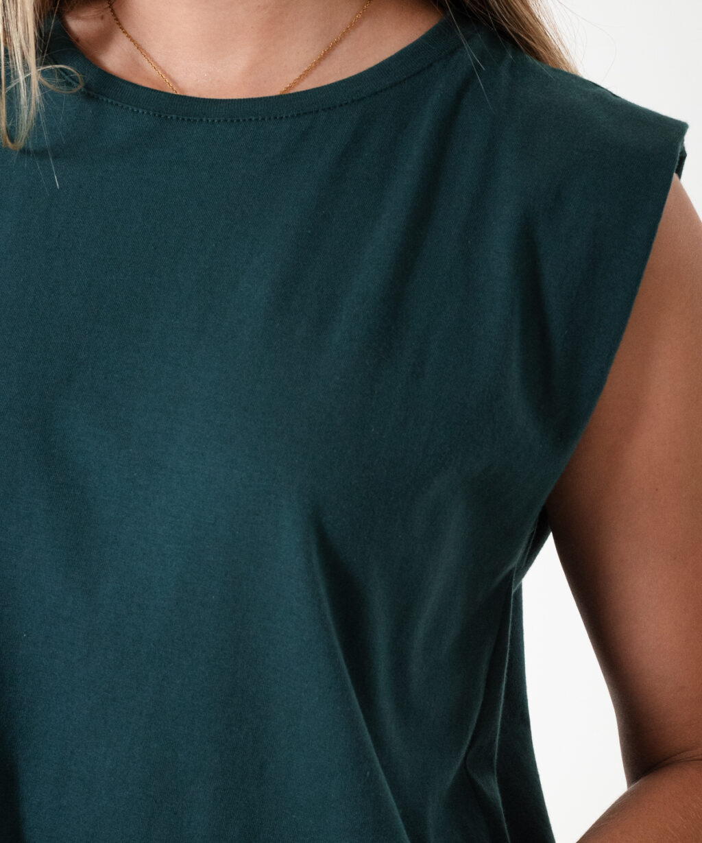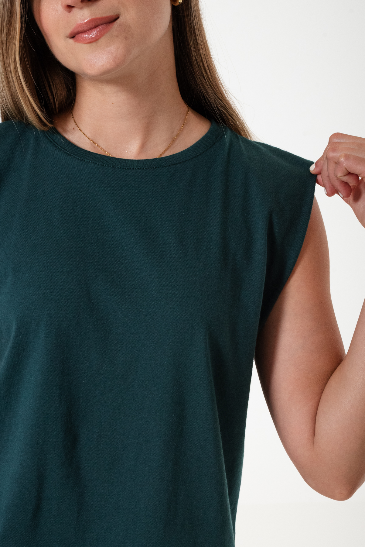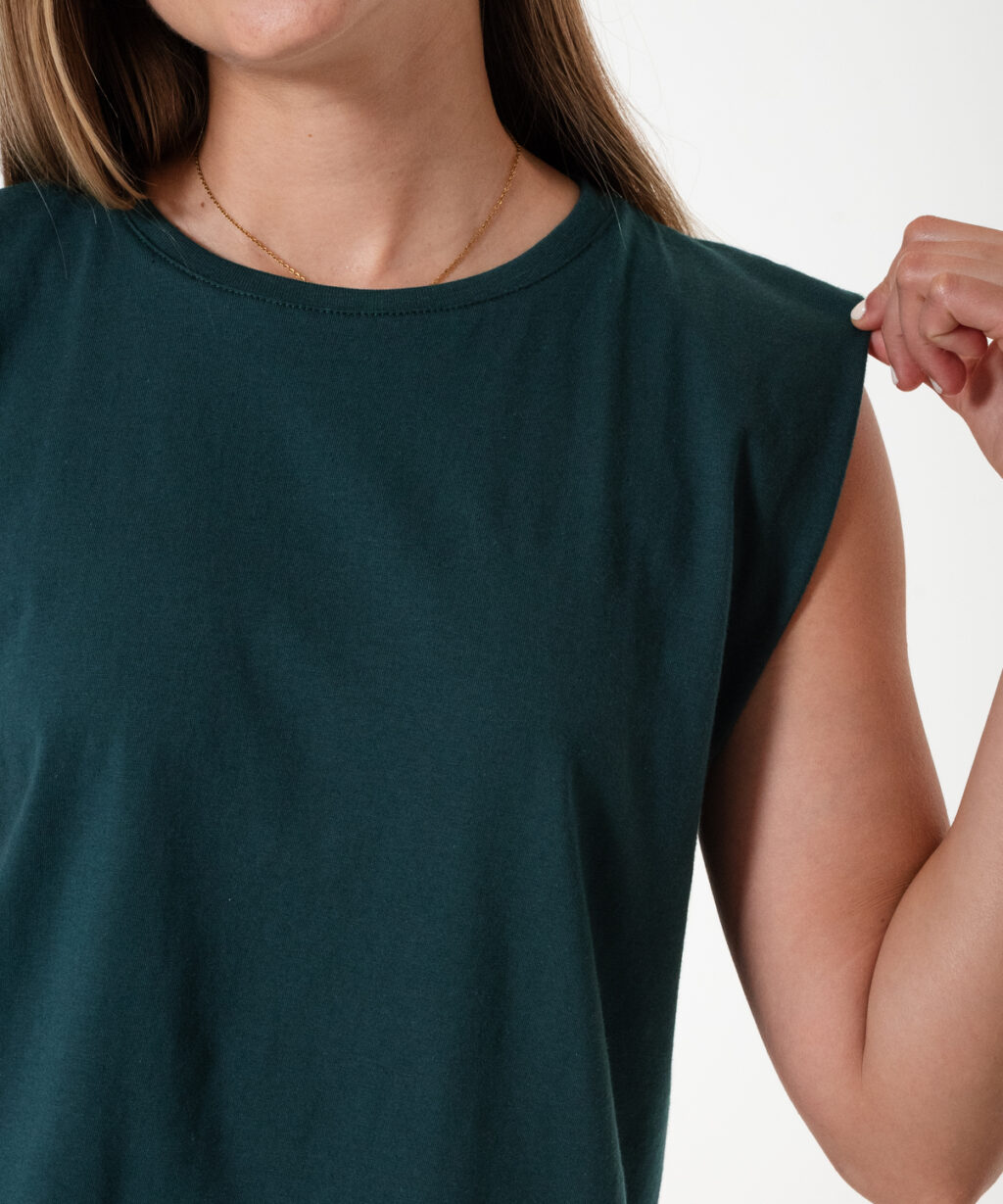 Remera sin manga en tela Jersey 100% algodón, cuello redondo