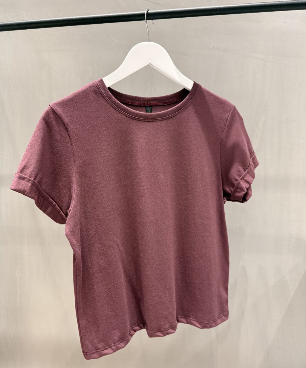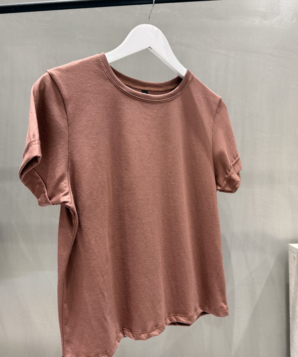 Remera ideal para usar con prendas tiro alto, confeccionada en tela de Jersey 100% algodón, Con detalle de dobladillo en mangas y cuello redondo.