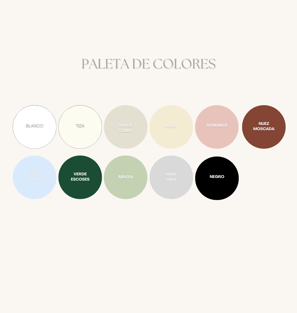 | Color | Cielo Claro, Nube Gris, Romance, Abadia, Blanco, Negro, Rayo, Tiza, Verde Escoces |