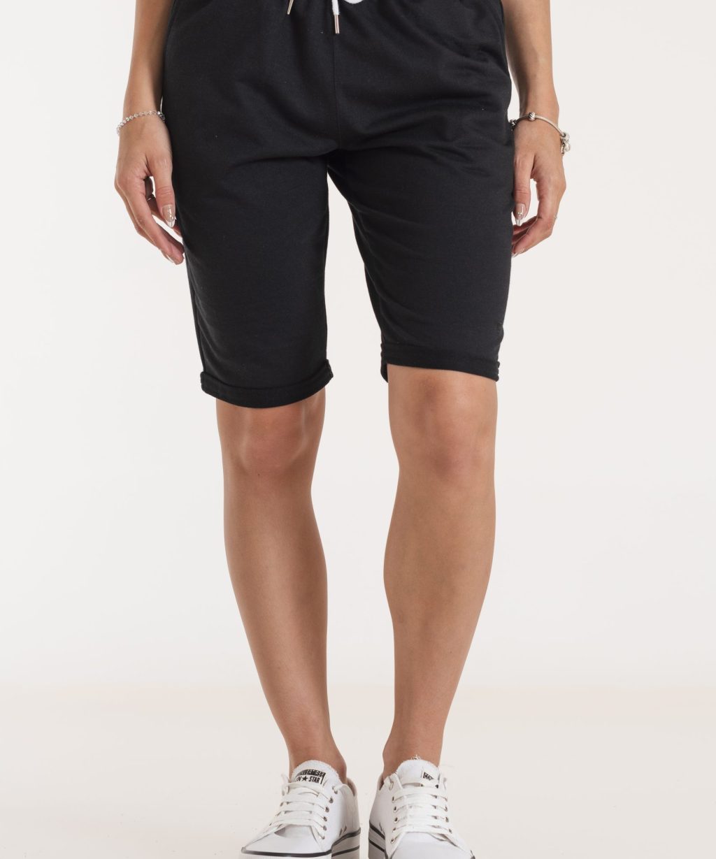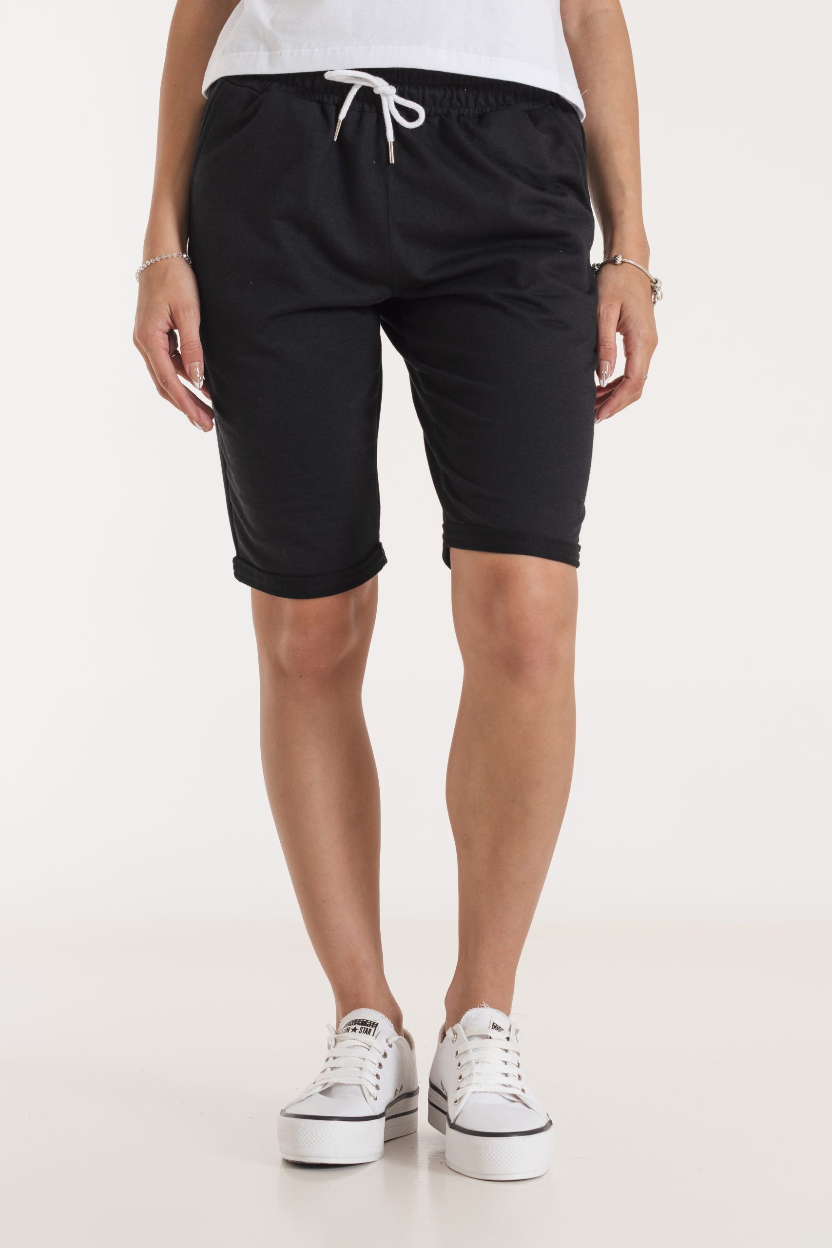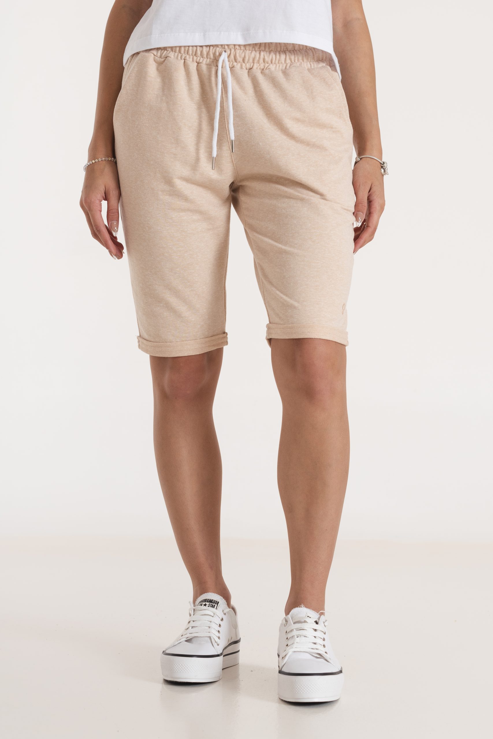 Bermuda en tela Rustica Liviana 100% algodón, cintura con elastico, cordon, bolsillos delanteros y bordado.