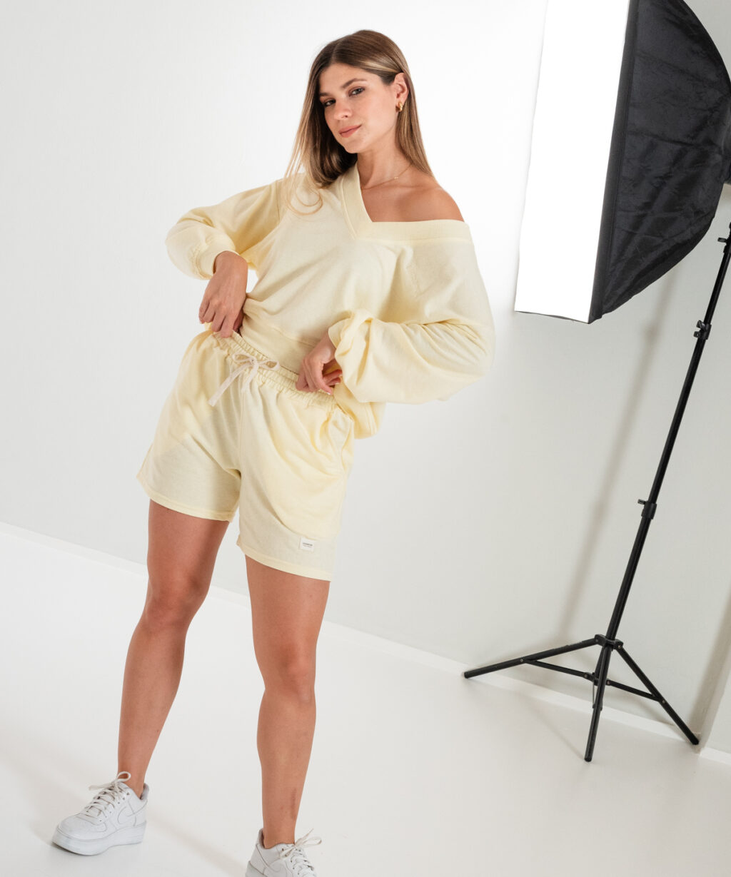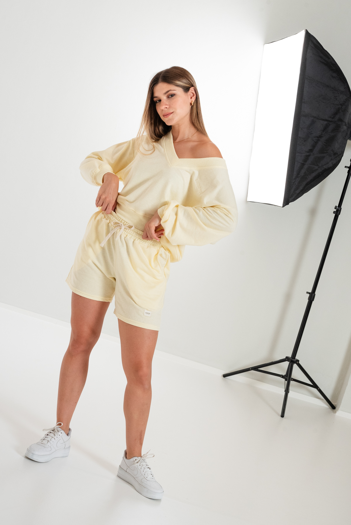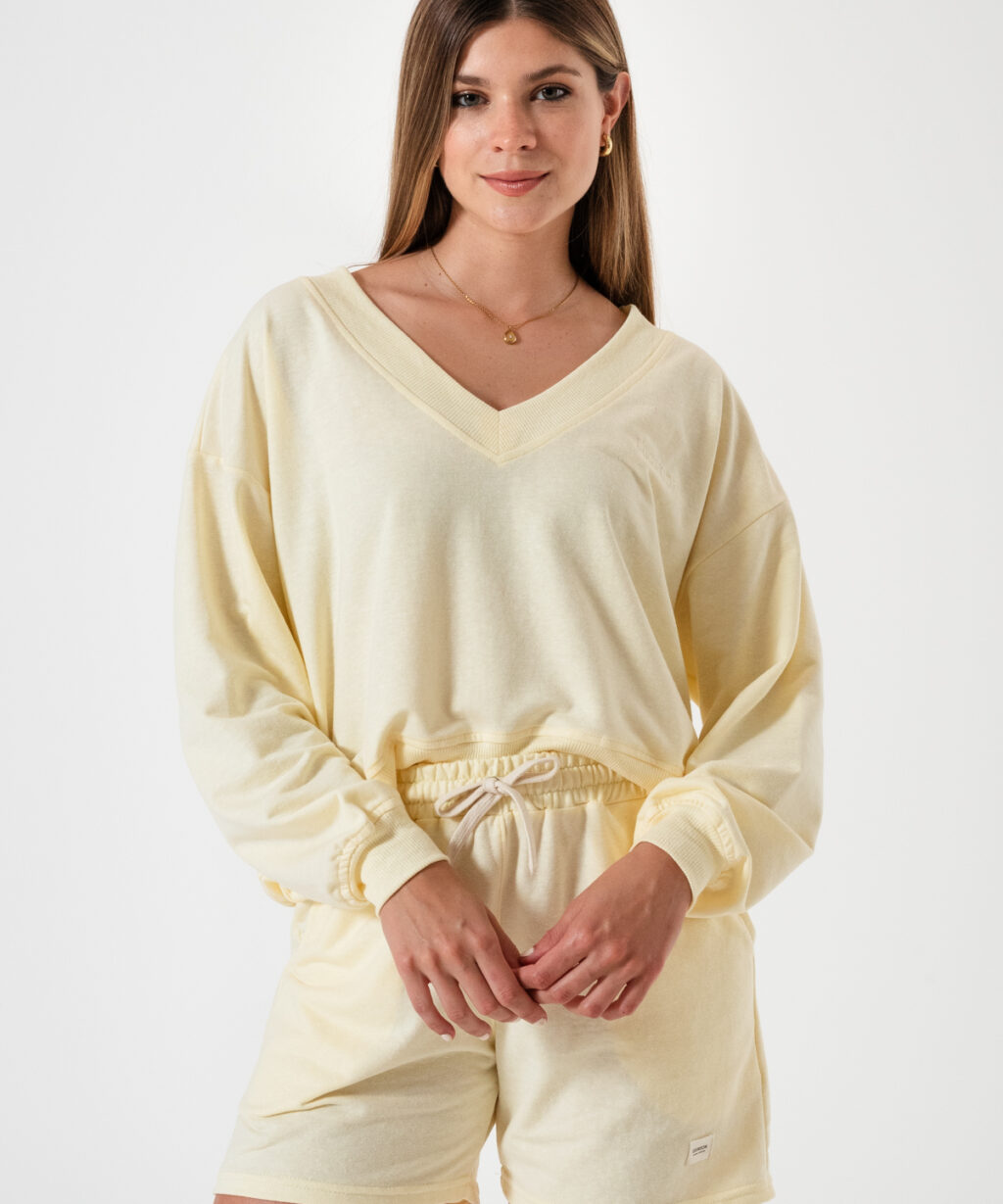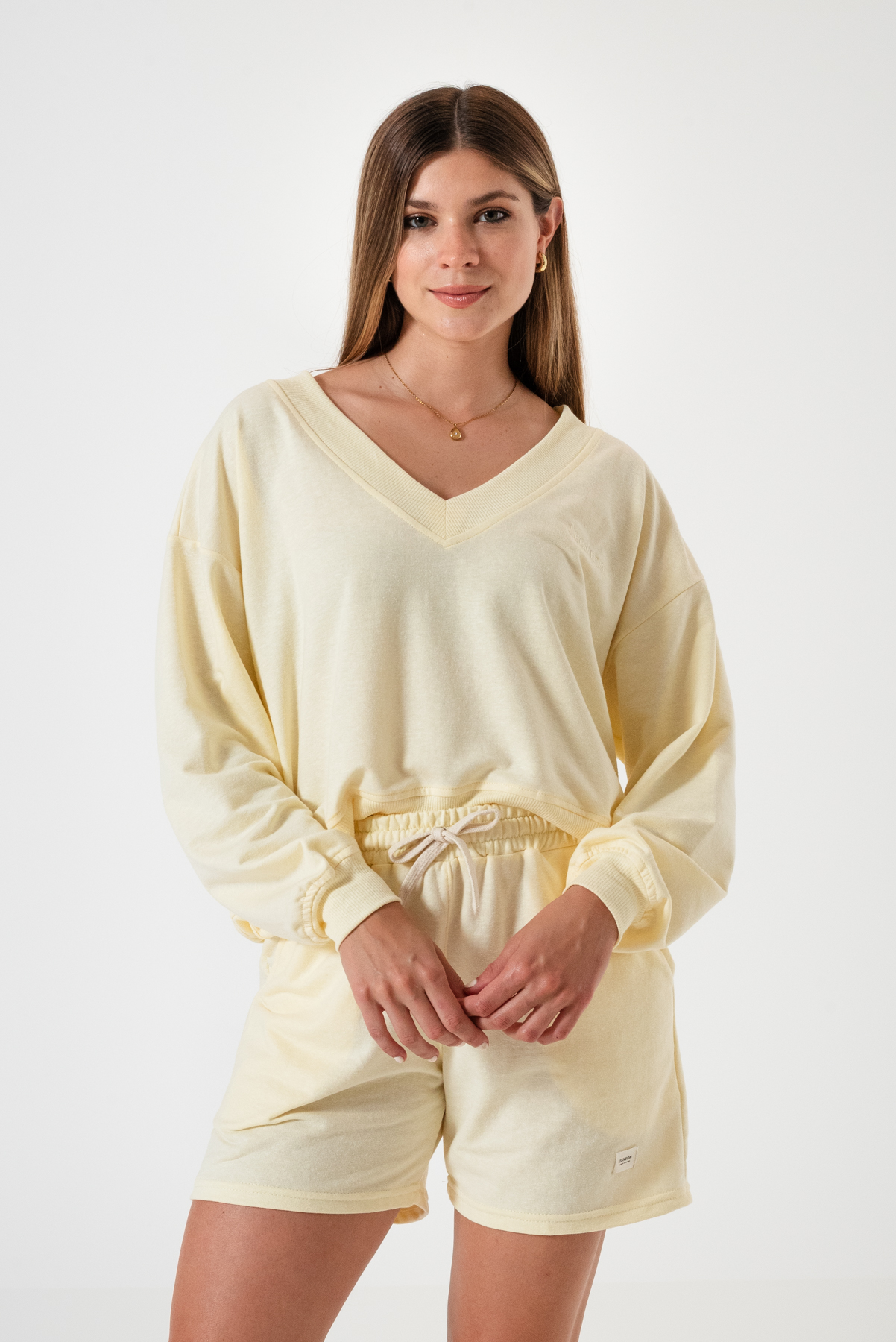 Buzo en tela Rustica Liviana 100% algodón, amplio , con escote V y bordado.
