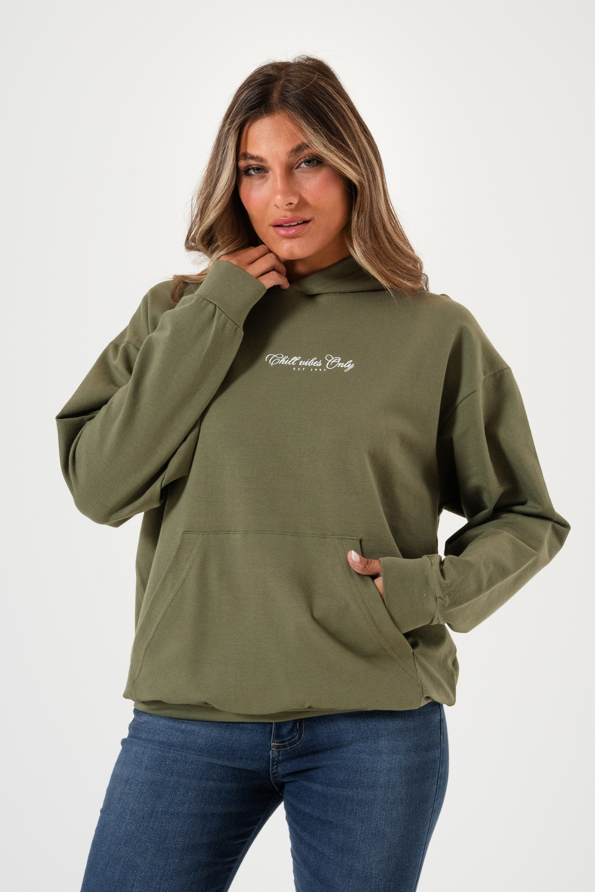 Buzo canguro con capucha, bolsillo delantero.