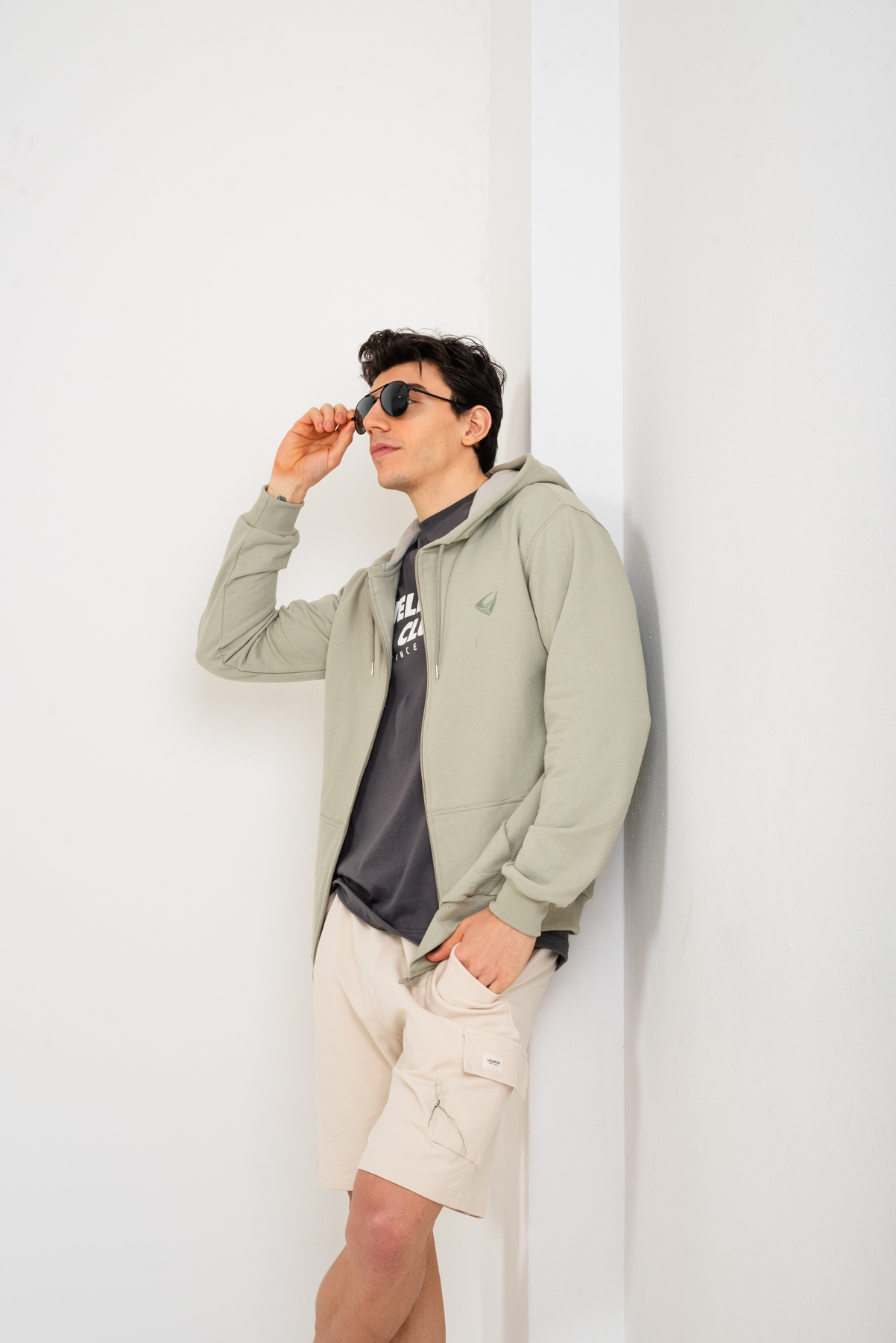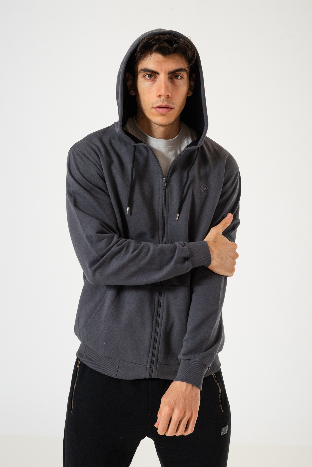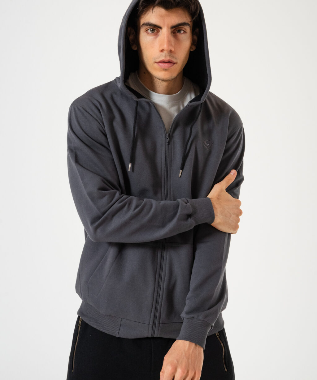 Campera en tela Rustica 100% algodón, capucha con cordon y bolsillos delanteros.