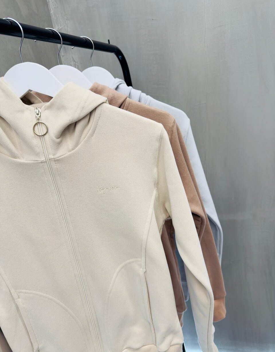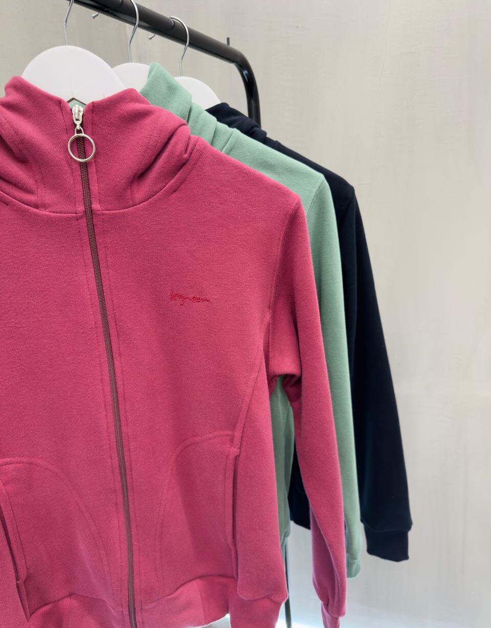 Campera en tela Rustica Liviana Premium 100% algodón, capucha y bordado lateral.
