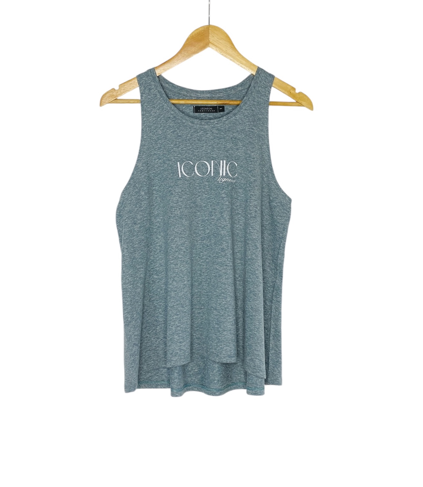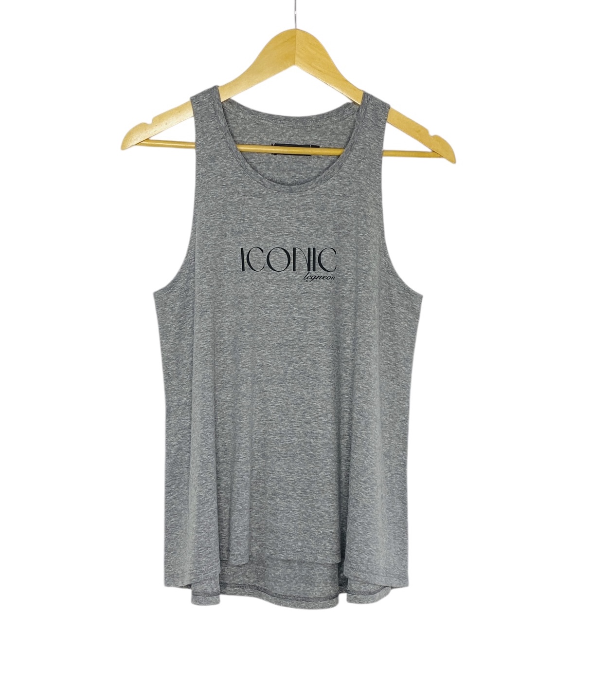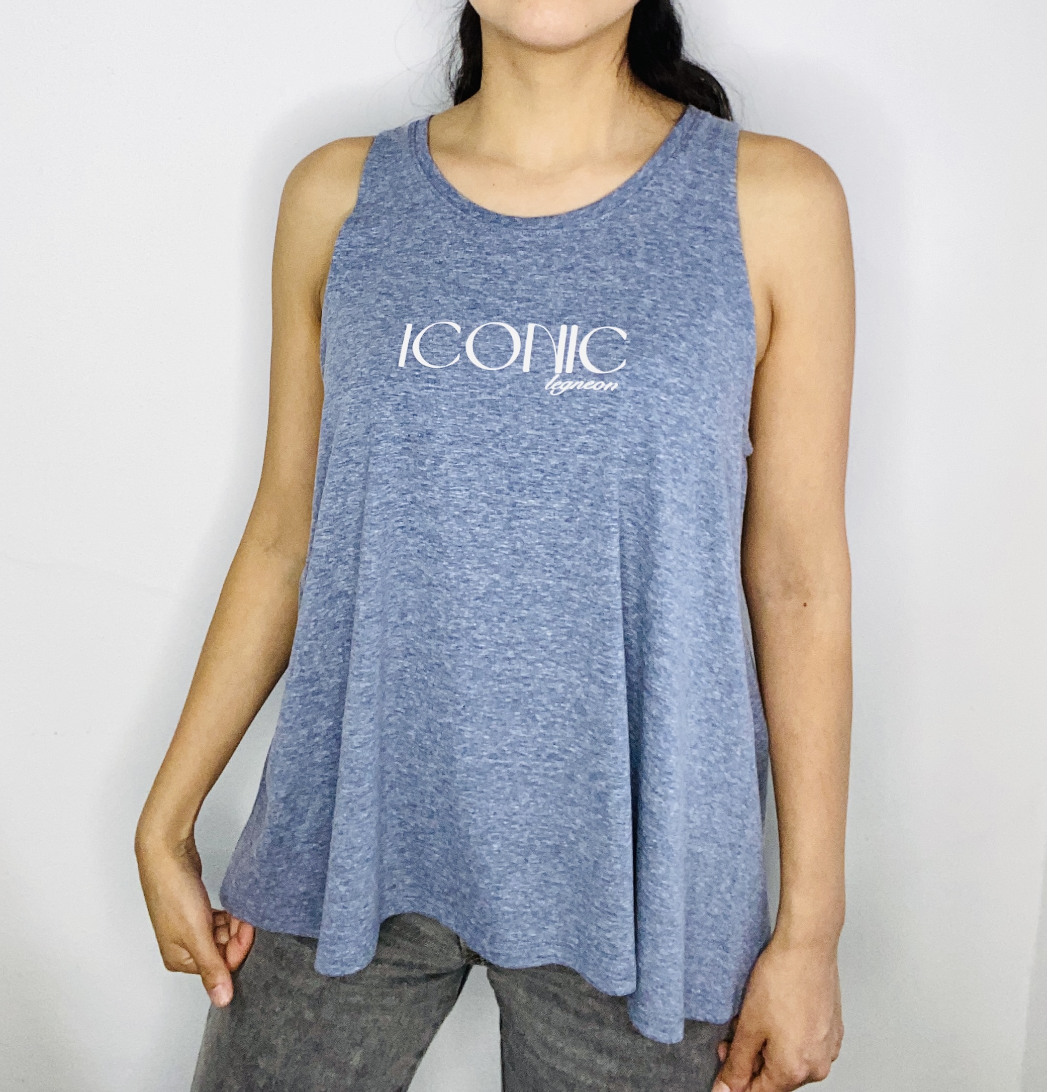 Musculosa amplia fabricada en jersey nevado premium, cuello redondo con estampa sutil.