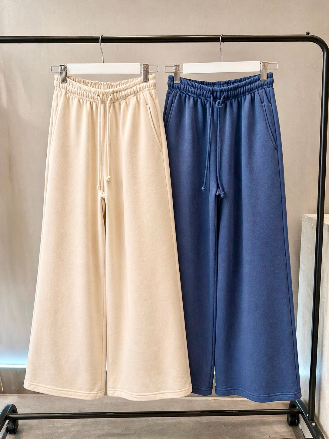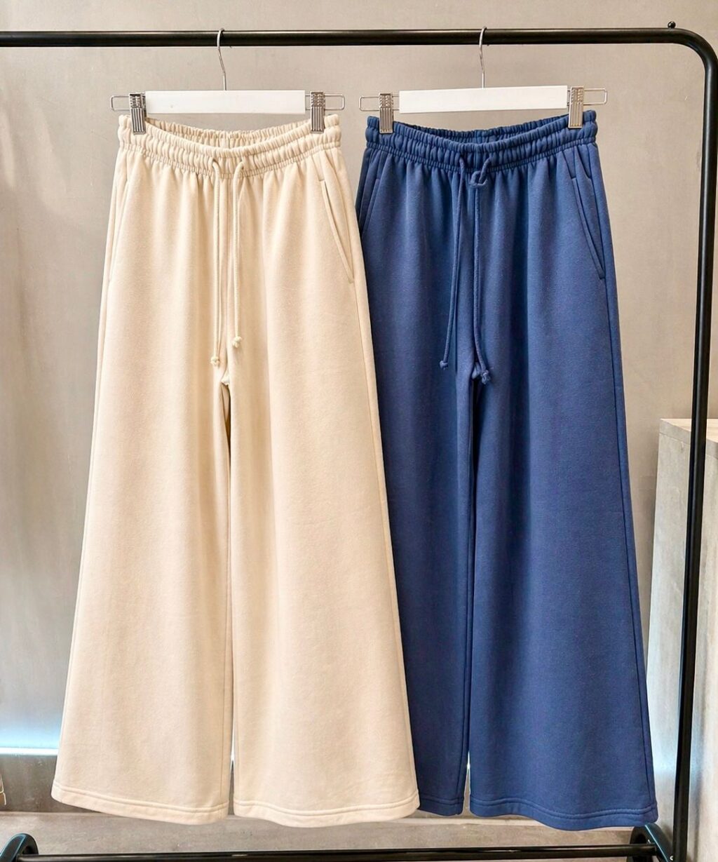 Pantalon de algodón frizado con elastico y cordón, bolsillos laterales.