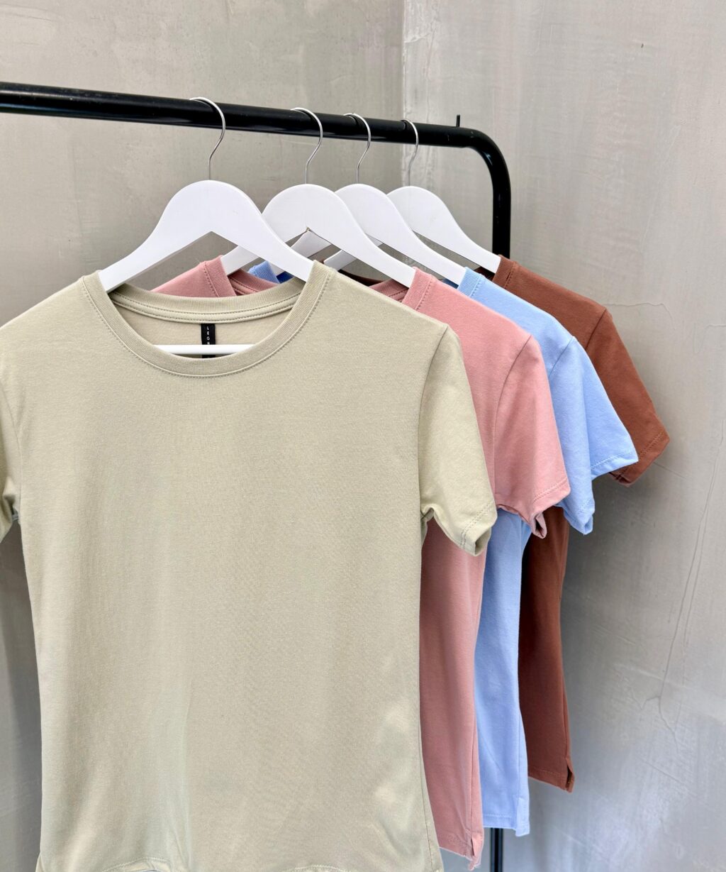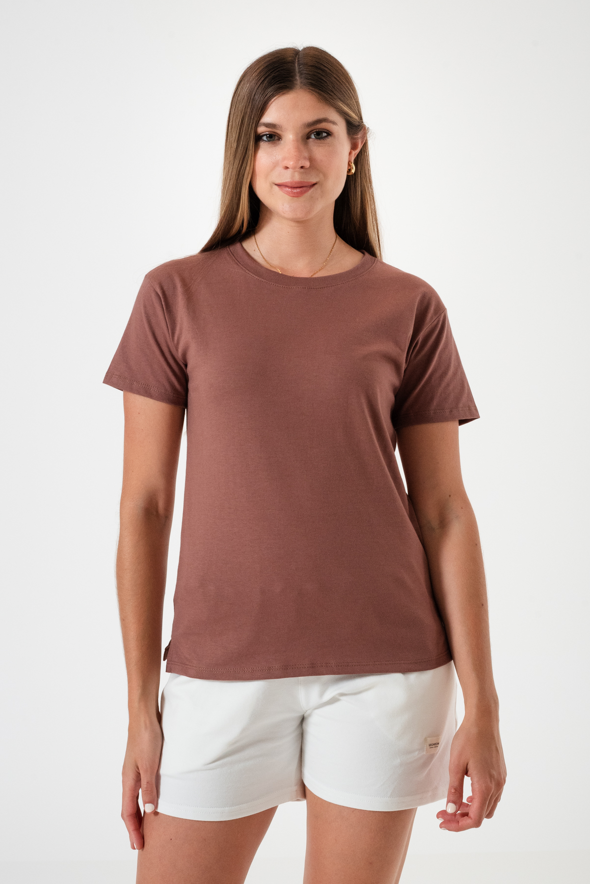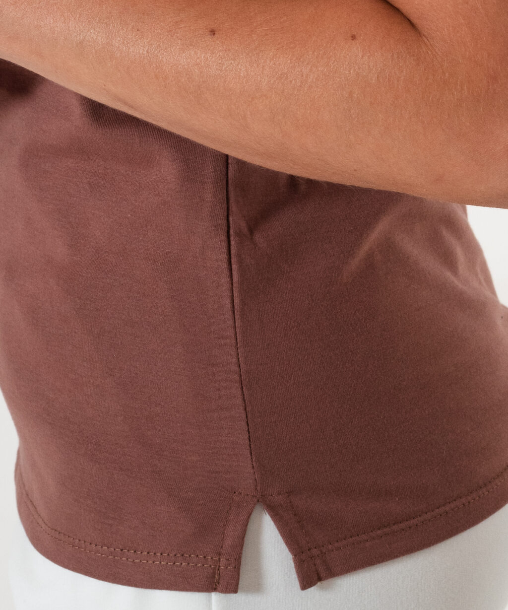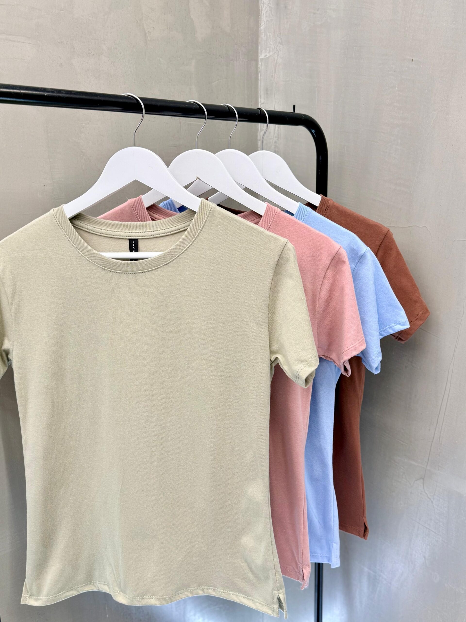 Remera en tela Jersey 100% algodon con pequeños tajos laterales para mayor apertura en la parte de la cadera.