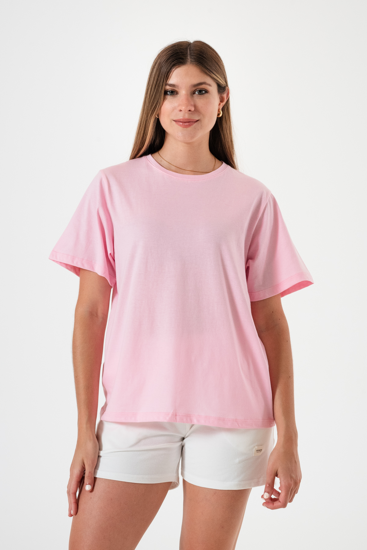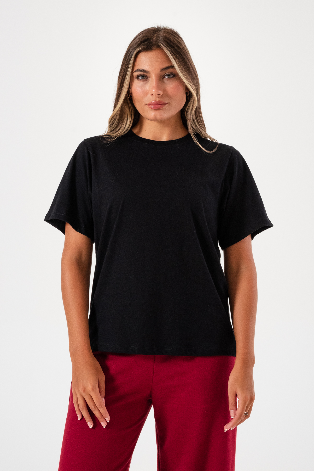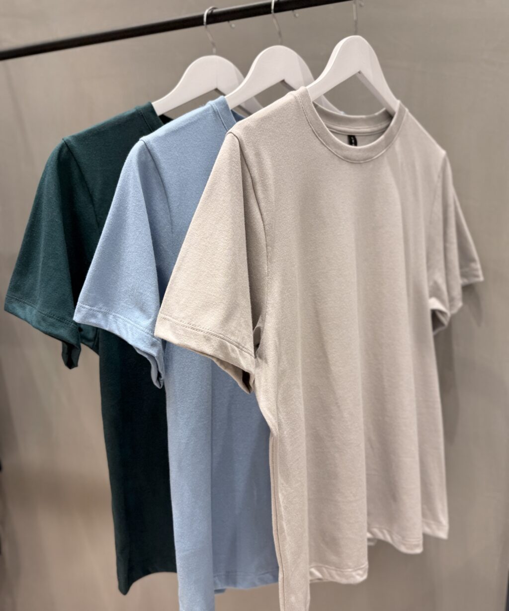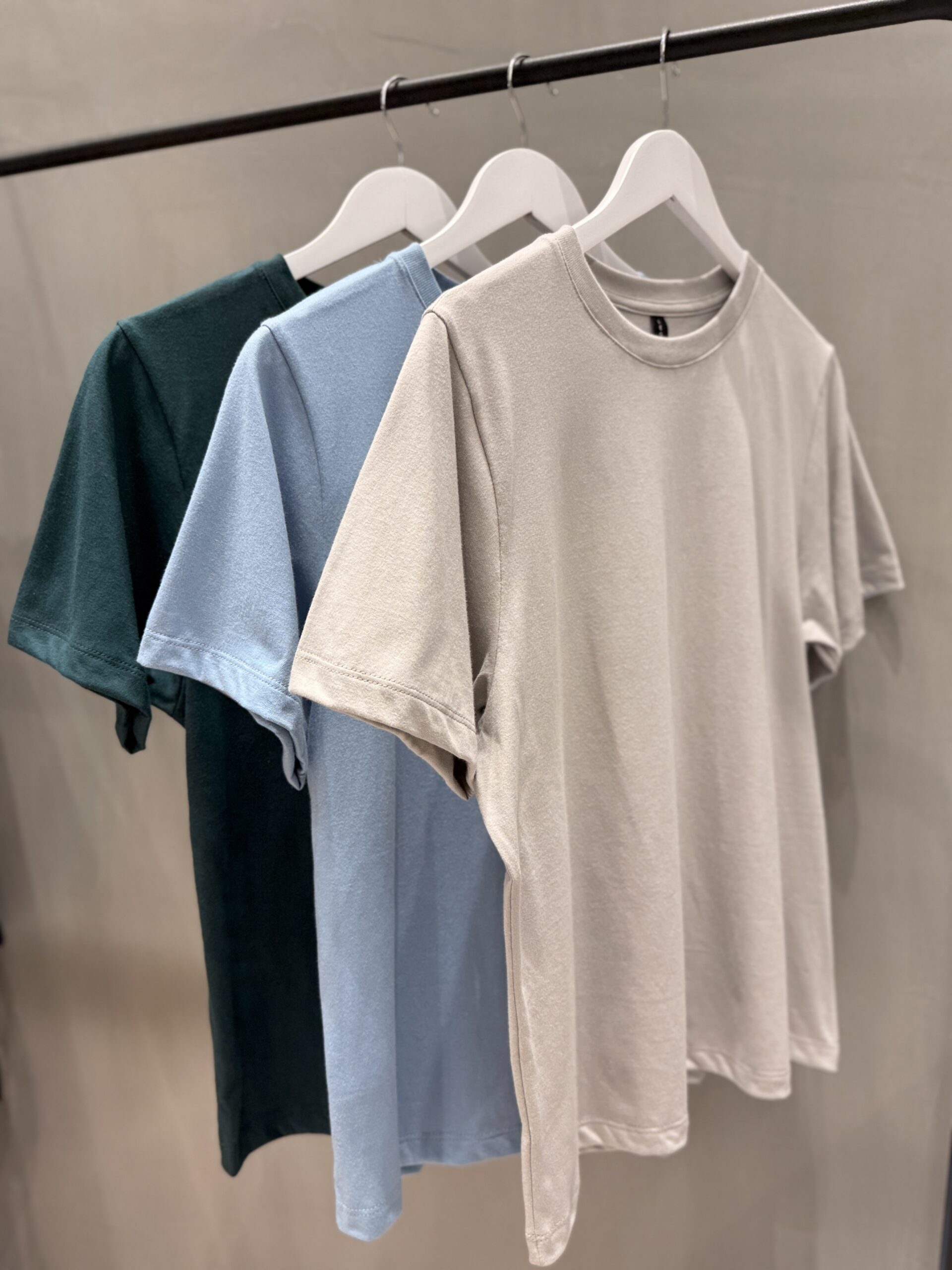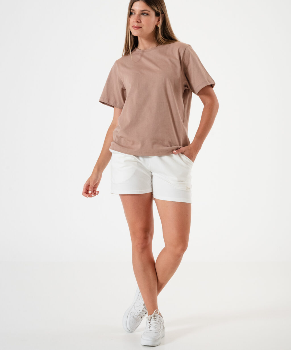 Remera básica amplia en tela Jersey 100% algodón, cuello redondo.