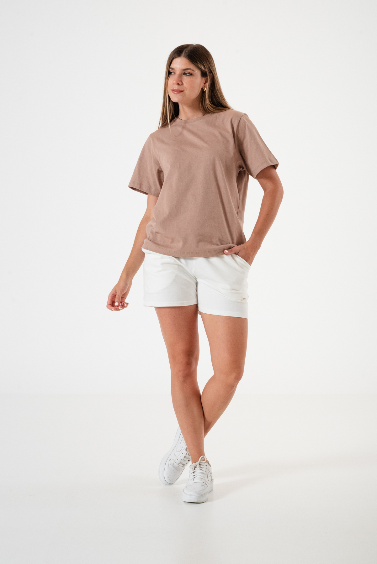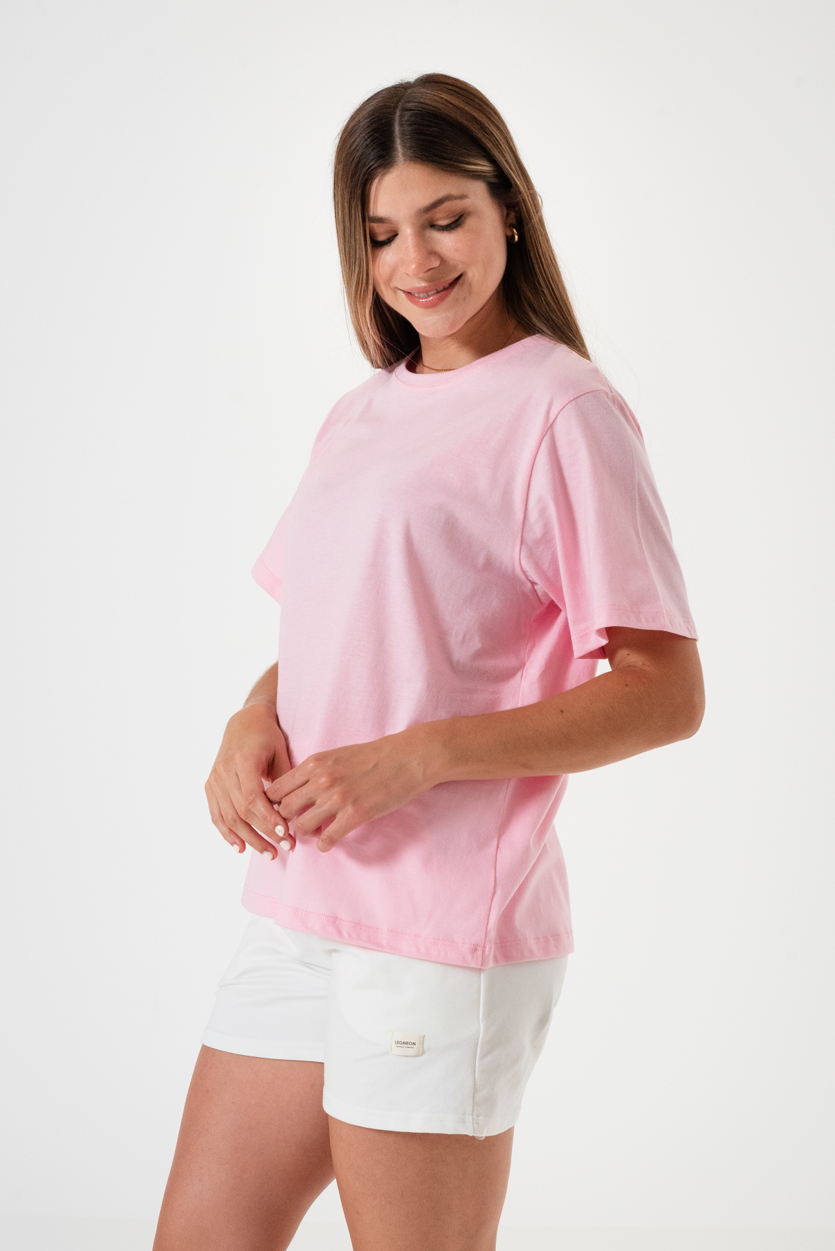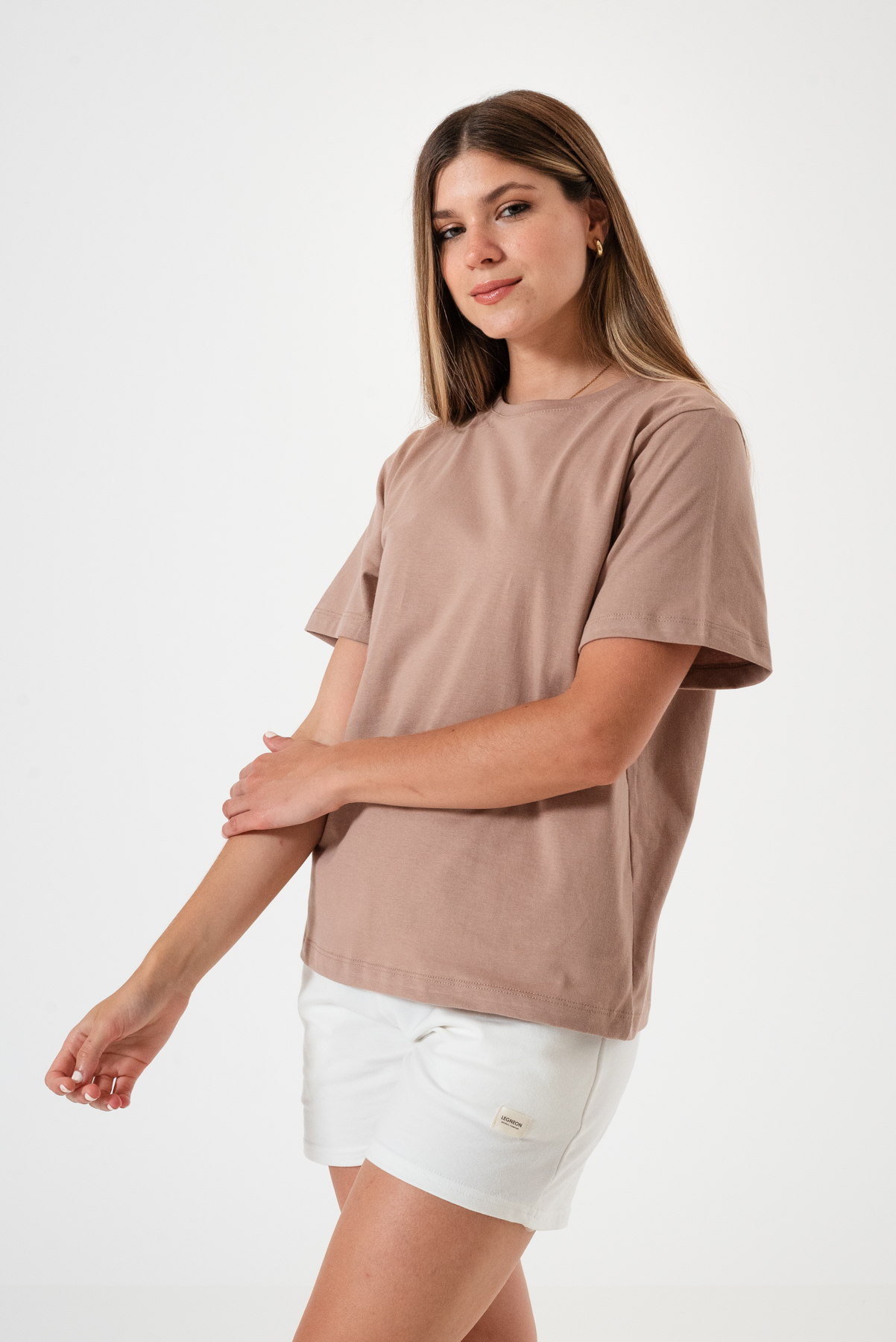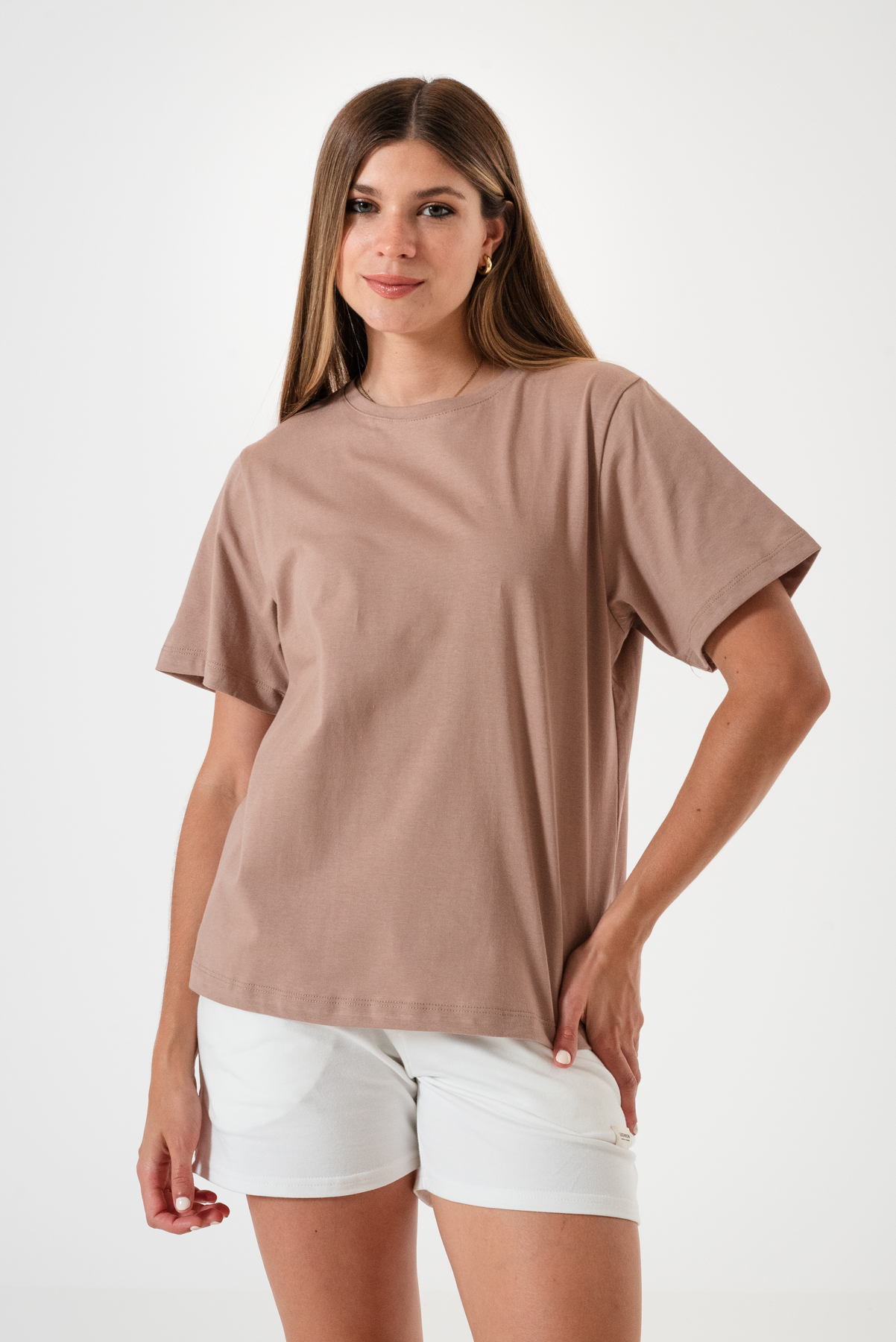 Remera básica amplia en tela Jersey 100% algodón, cuello redondo.