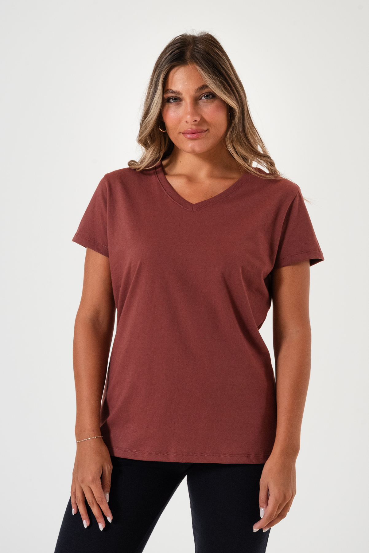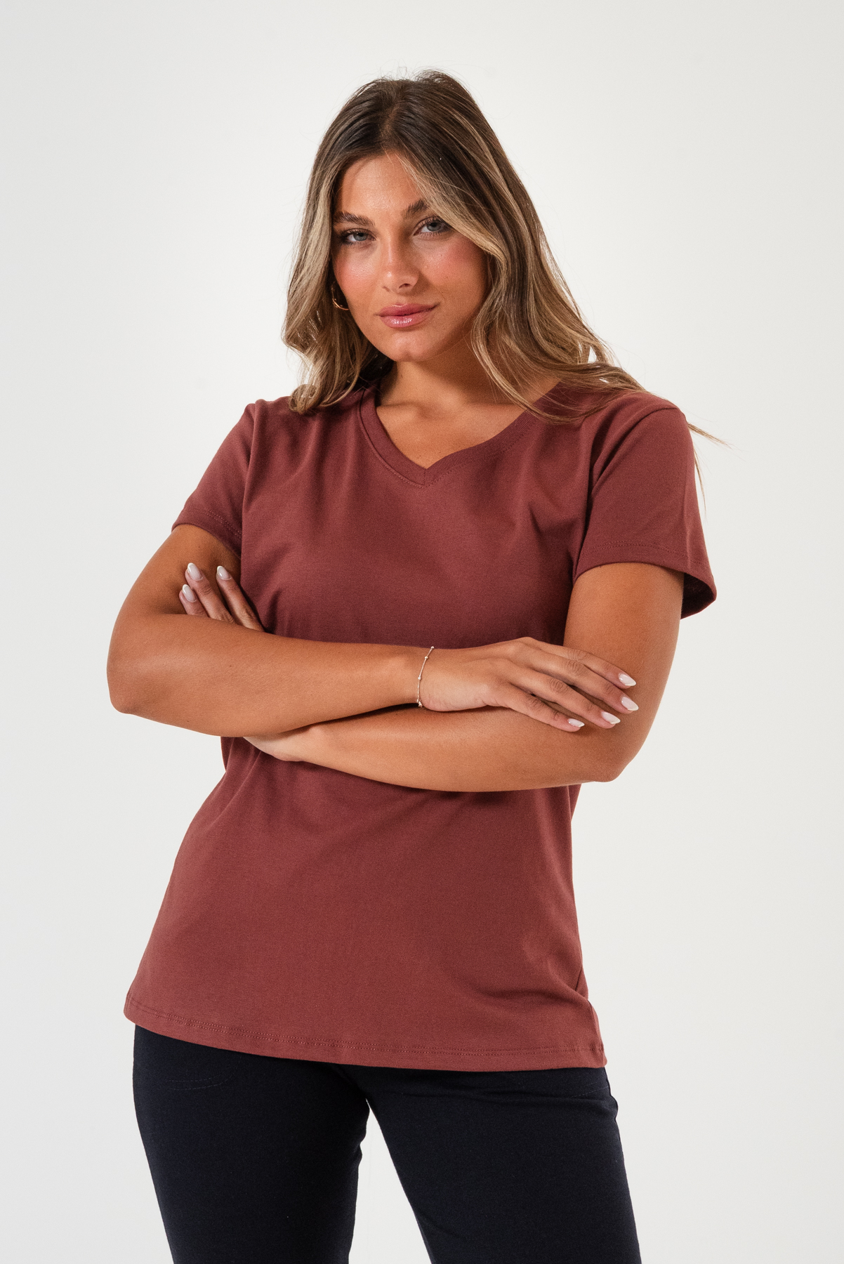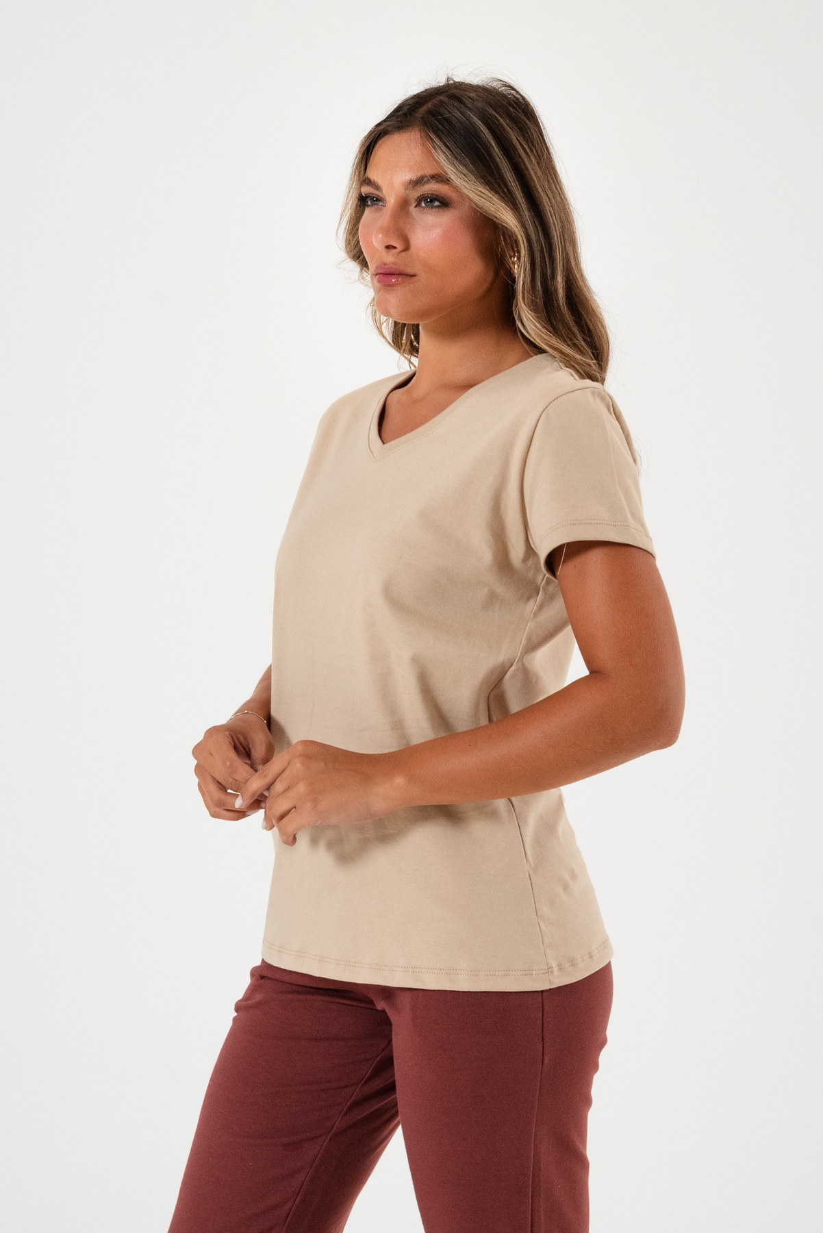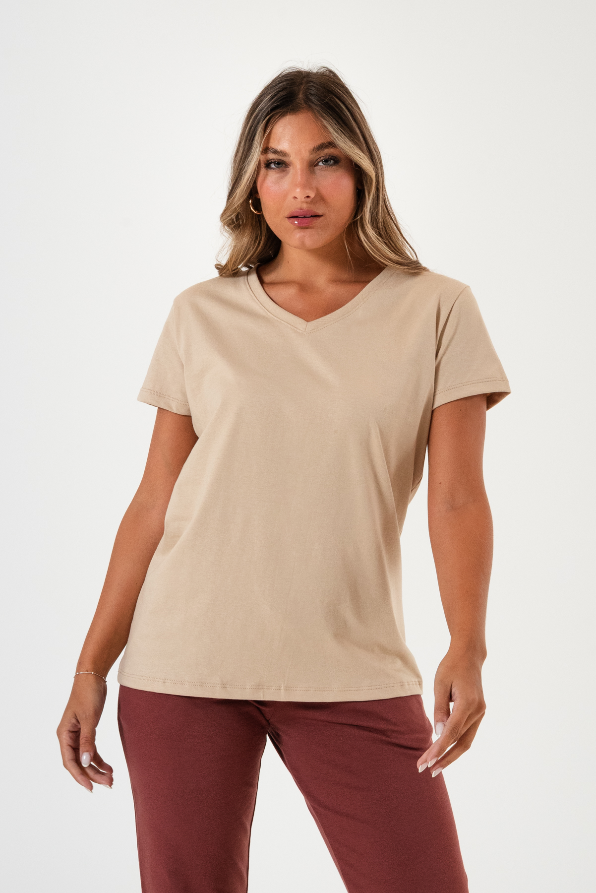Remera con escote V, fabricada en jersey premium.