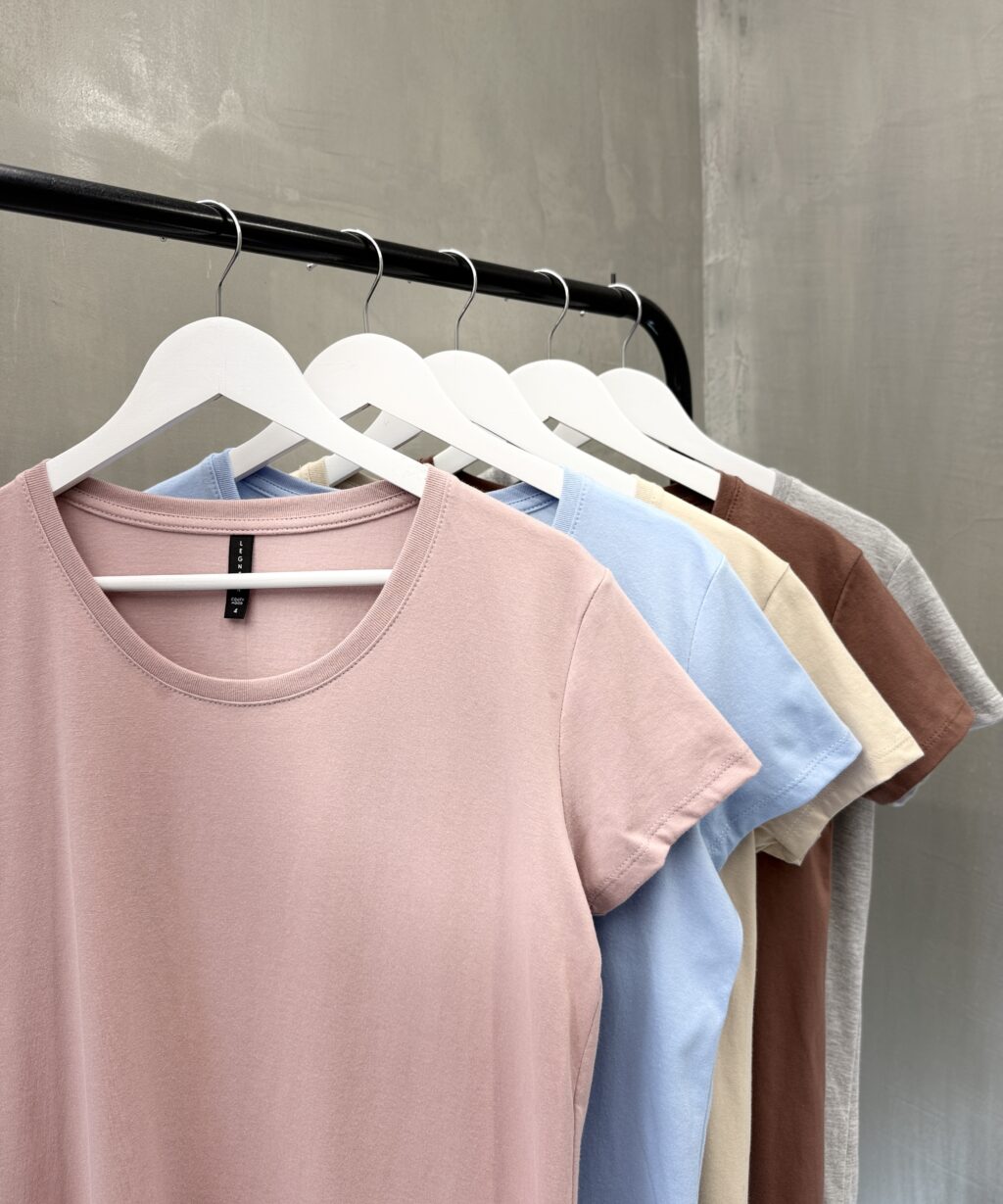 Remera fresca entallada fabricada en jersey algodón premium, cuello redondo.