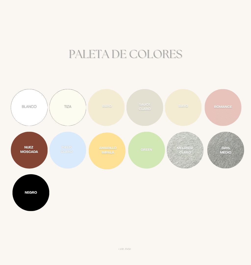 | Color | Cielo Claro, Gris Piedra, Gris Tinta, Amarillo Impala, Blanco, Green, Mge Claro 5, Mge Medio 25, Mouse de Limon, Negro, Nuez Moscada, Pistacia, Rayo, Sauce Claro, Stucco, Tiza, Verde Escoces |