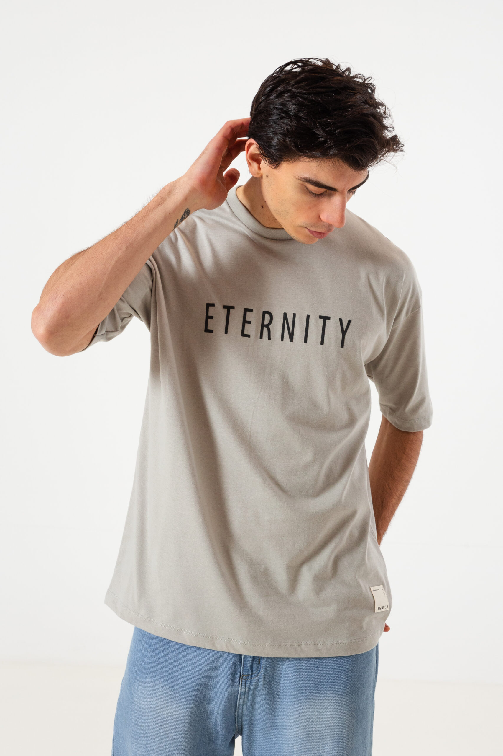 Remera OVERSIZE en Jersey algodón premium, tiene cuello en ribb. Con estampa.