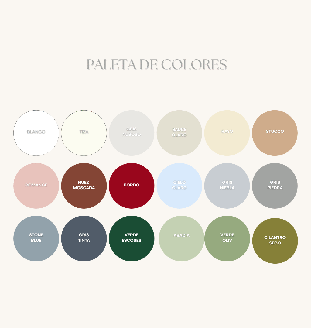 Color | Cielo Claro, Gris Nuboso, Gris Piedra, Gris Tinta, Romance, Abadia, Blanco, Bordo, Celeste Sueño, Cilantro Seco, Gris Niebla, Negro, Nuez Moscada, Rayo, Sauce Claro, Stone Blue, Stucco, Tiza, Verde Escoces, Verde Oliv |