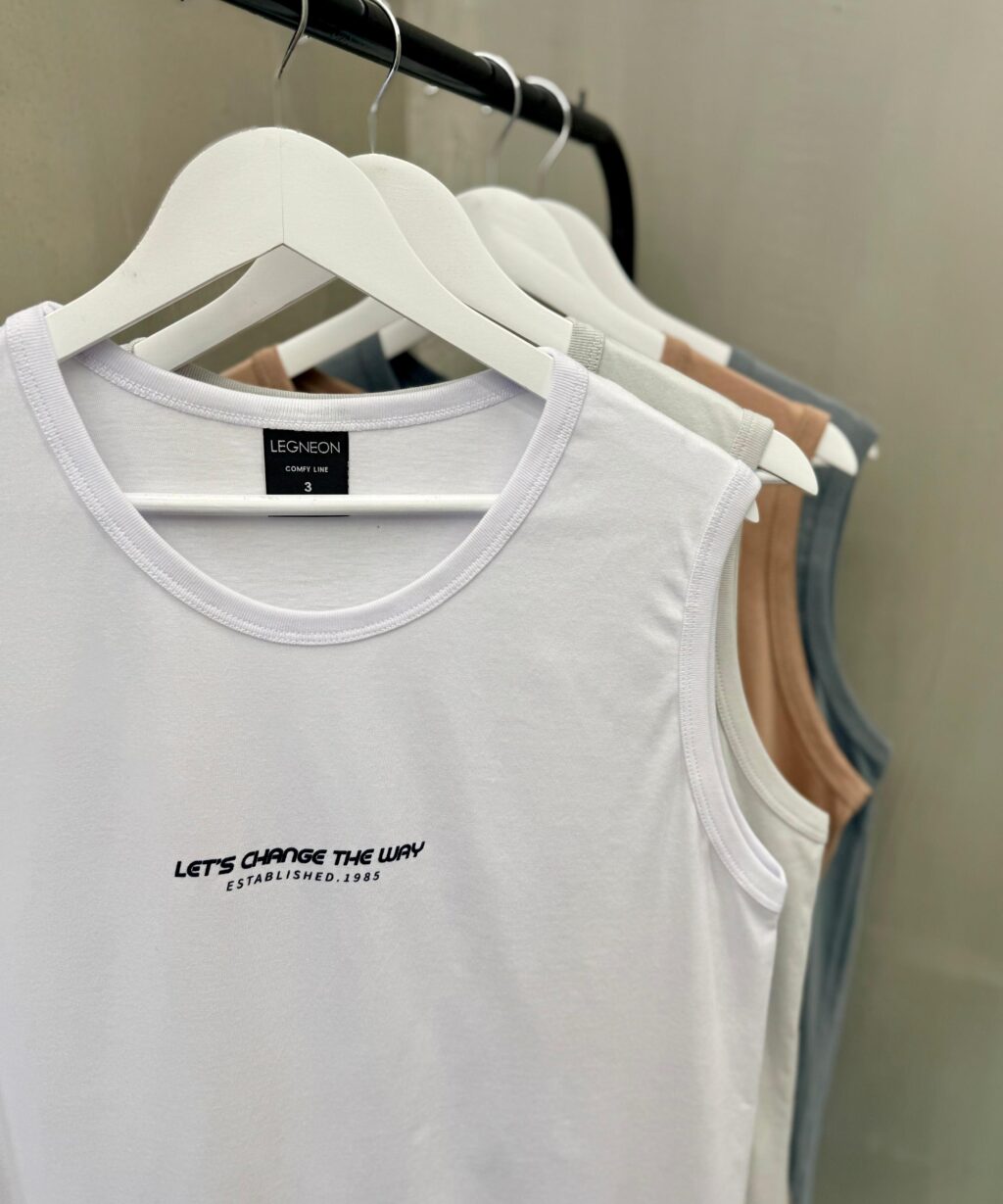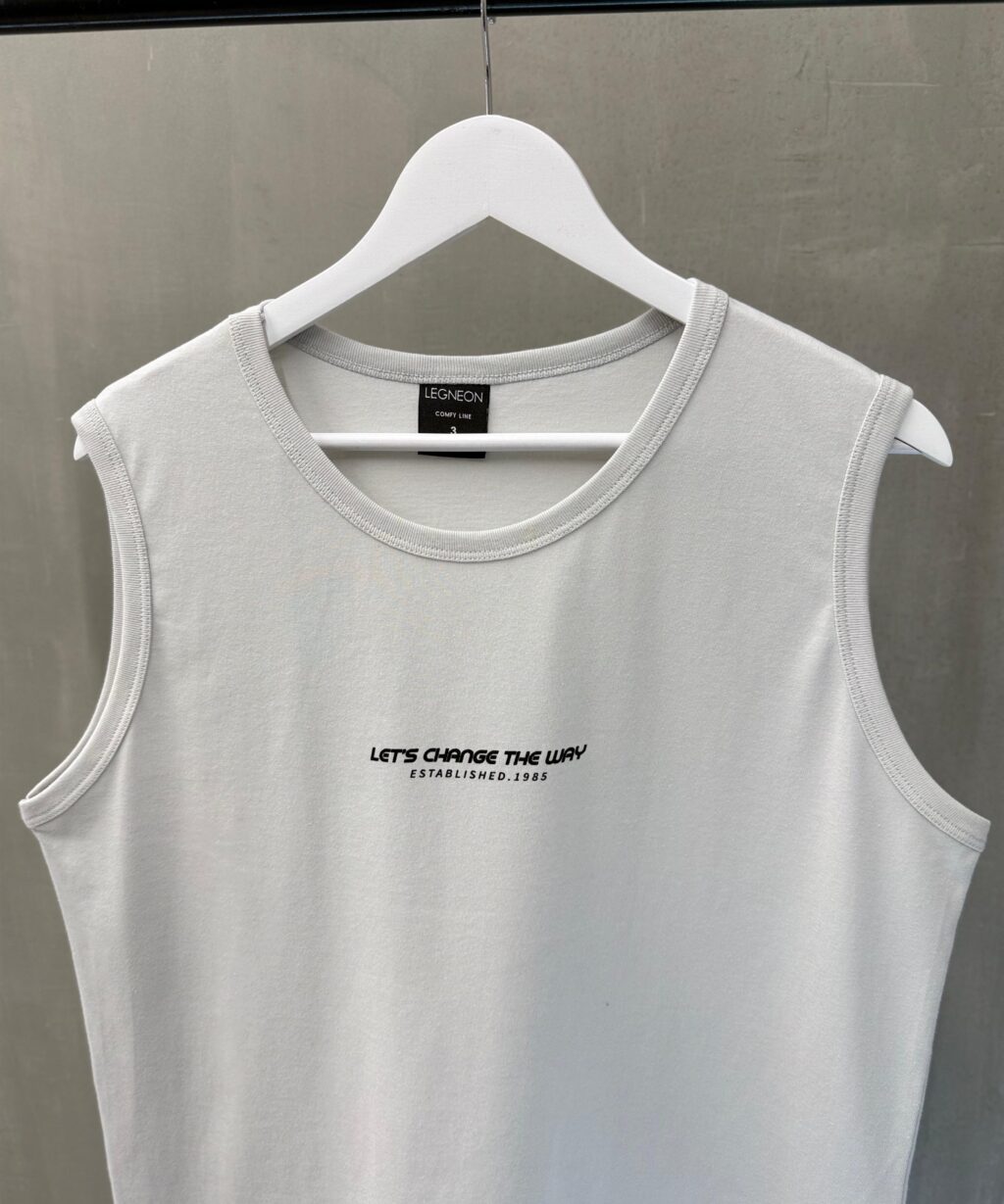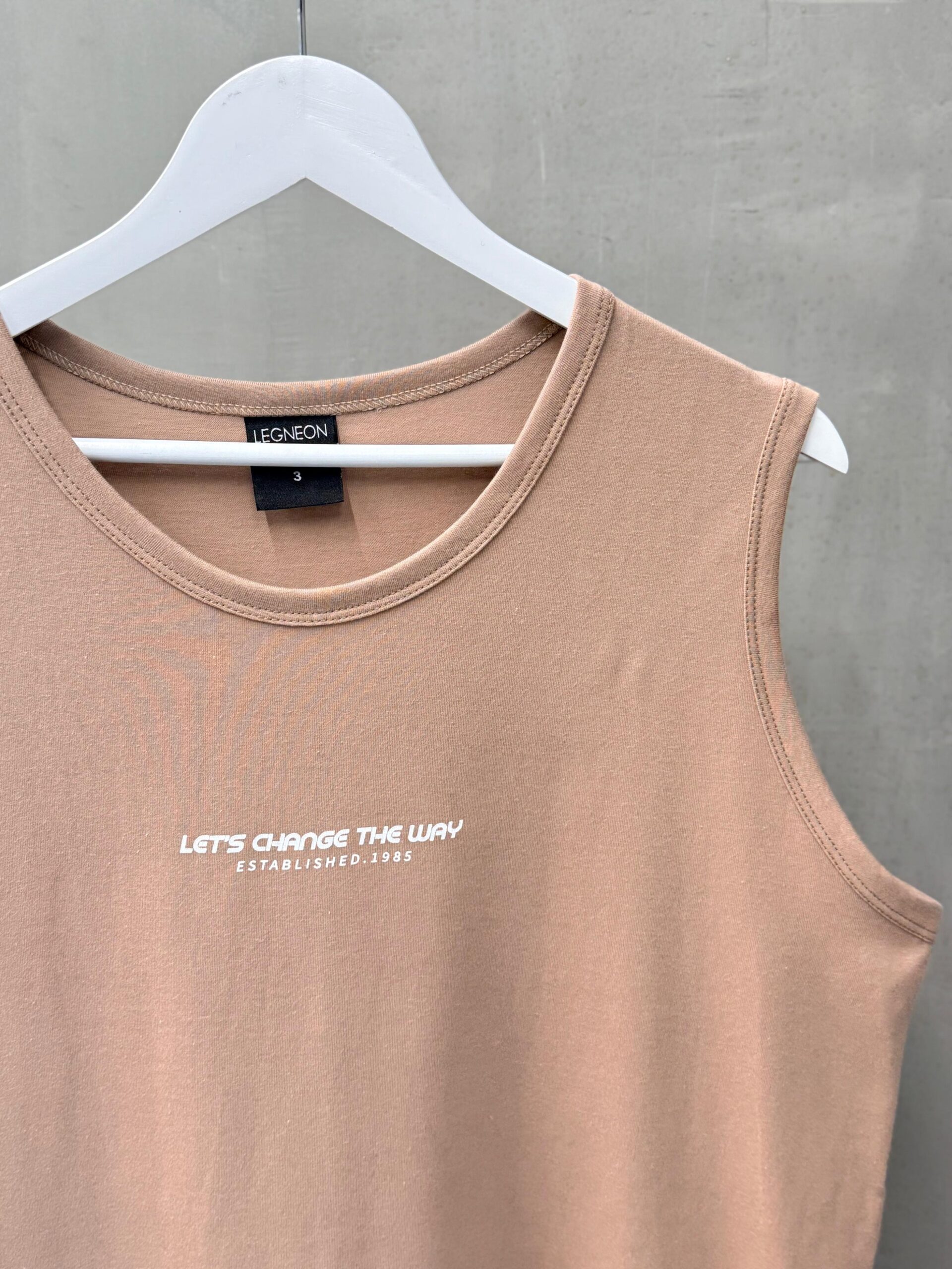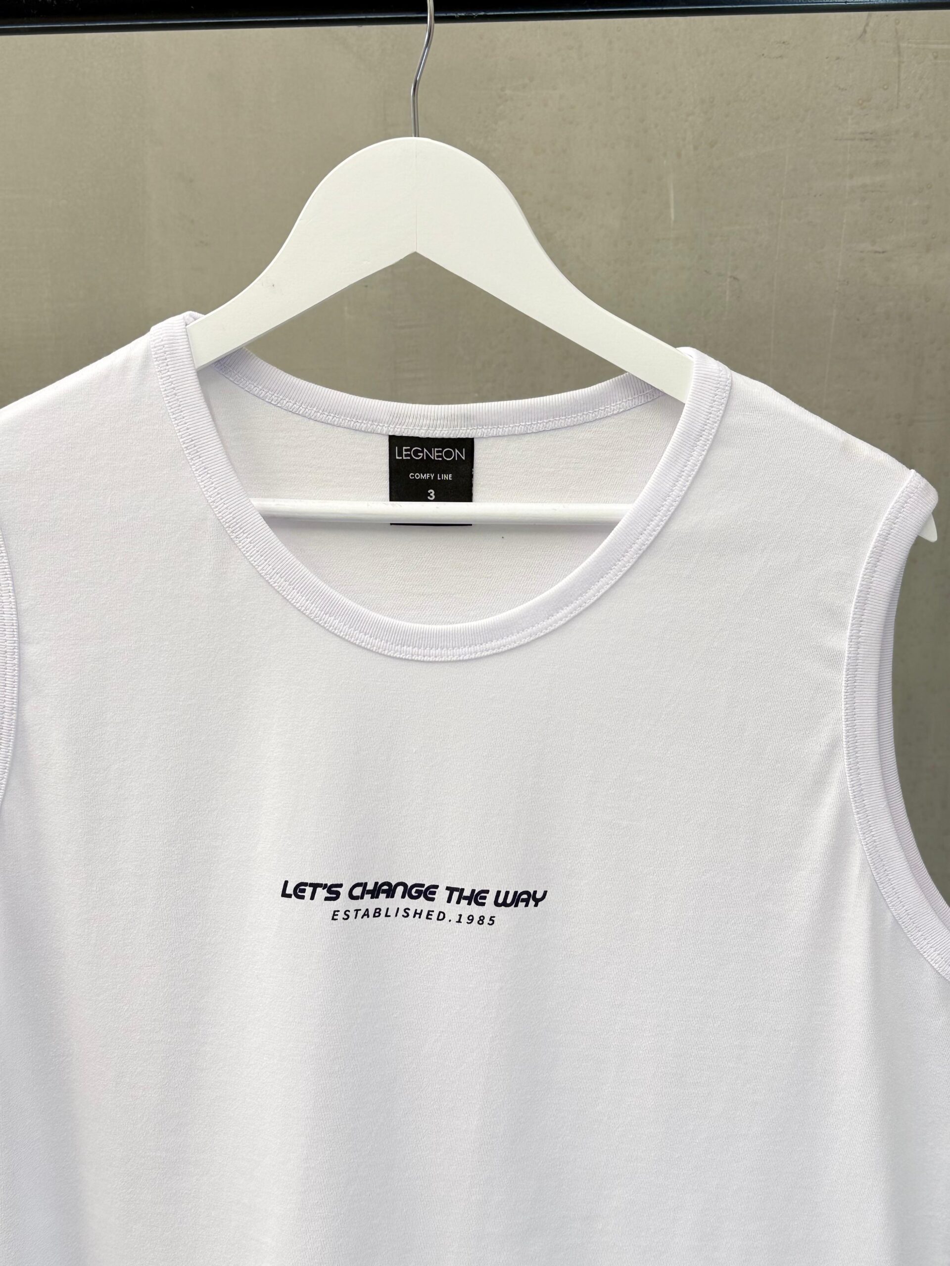 Remera sin manga estampada en tela Jersey algodon 100%, con cuello ribb.