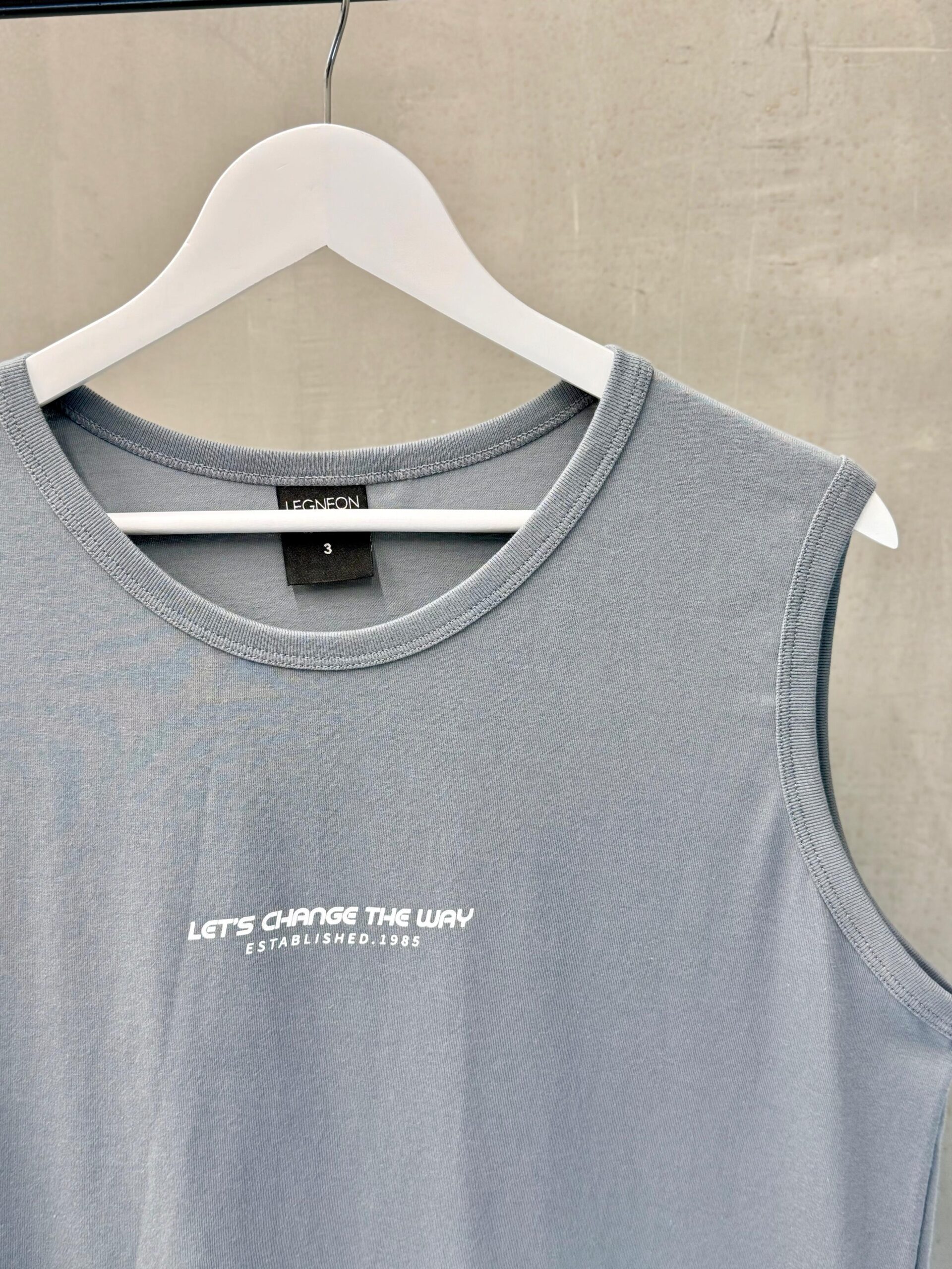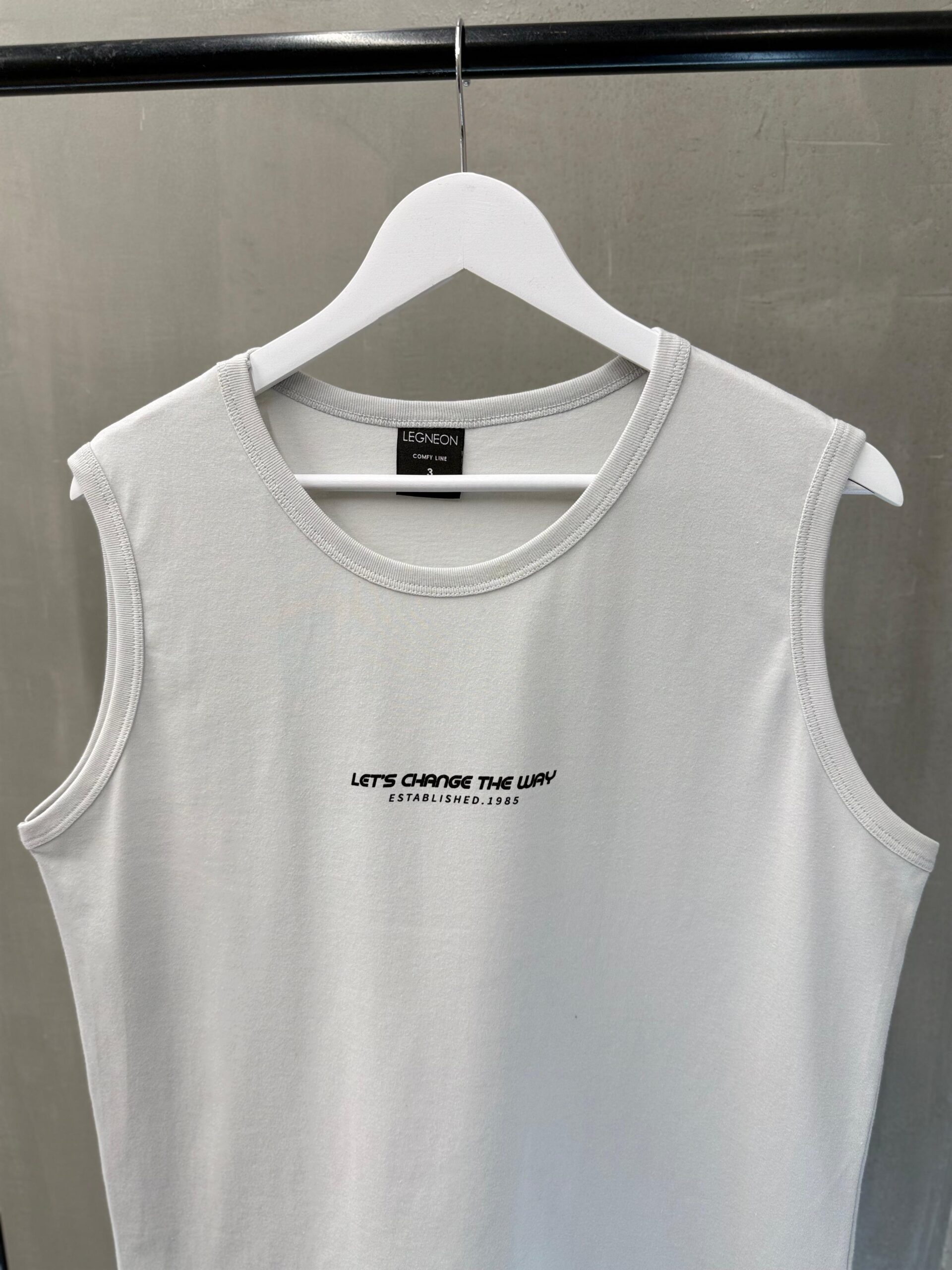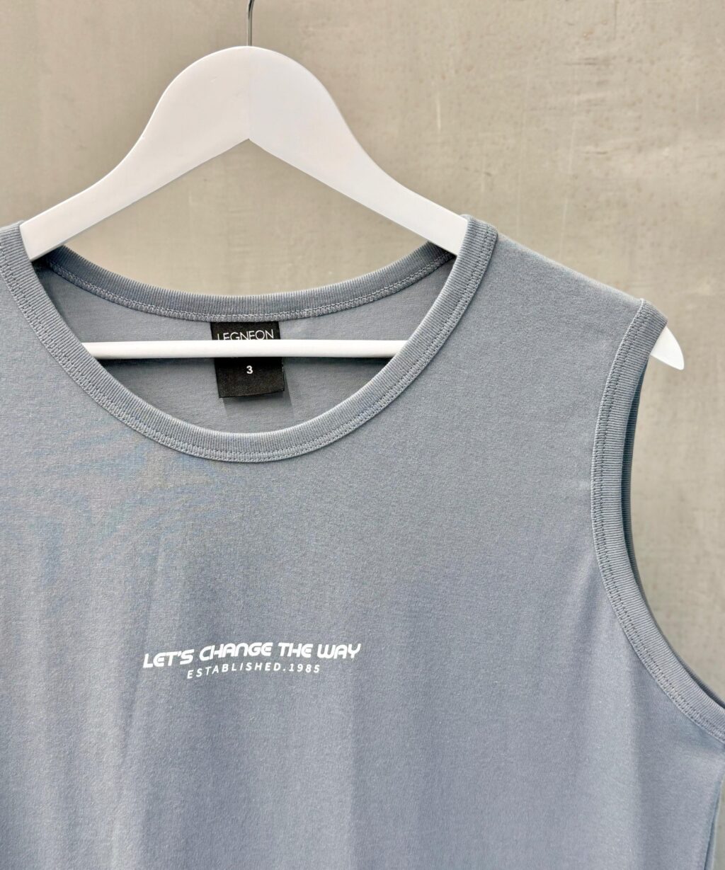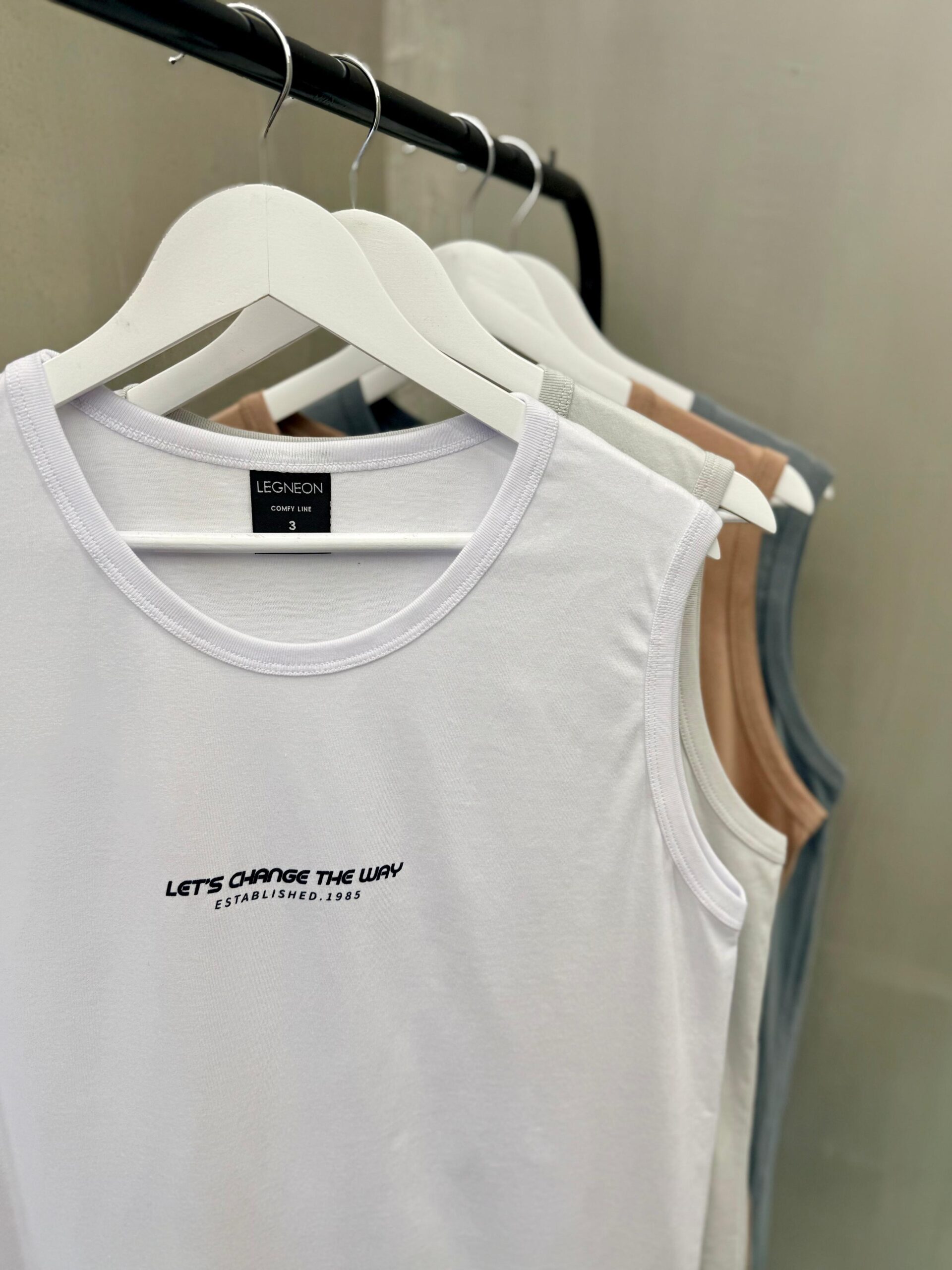 Remera sin manga estampada en tela Jersey algodon 100%, con cuello ribb.