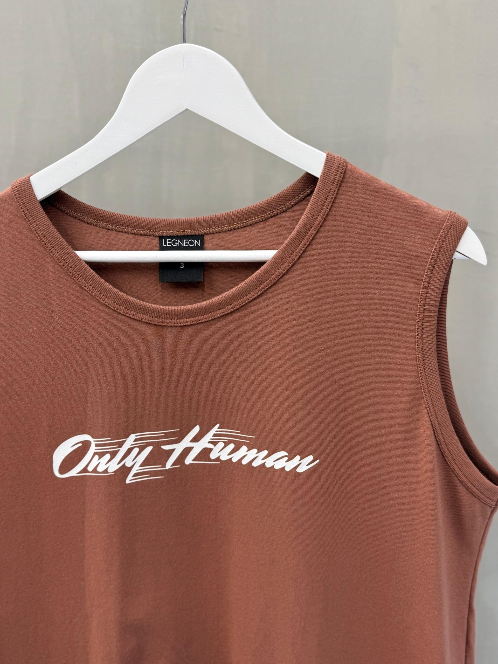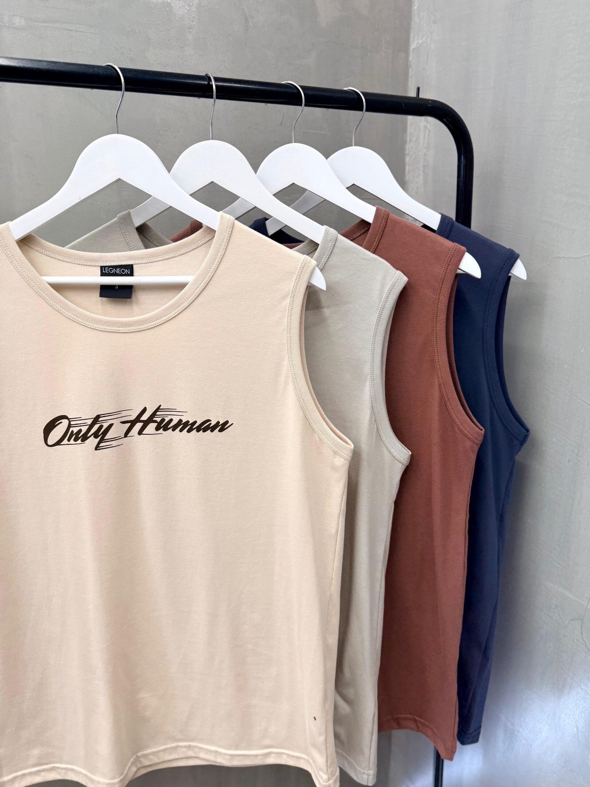 Remera sin manga estampada en tela Jersey algodon 100%, con cuello ribb.
