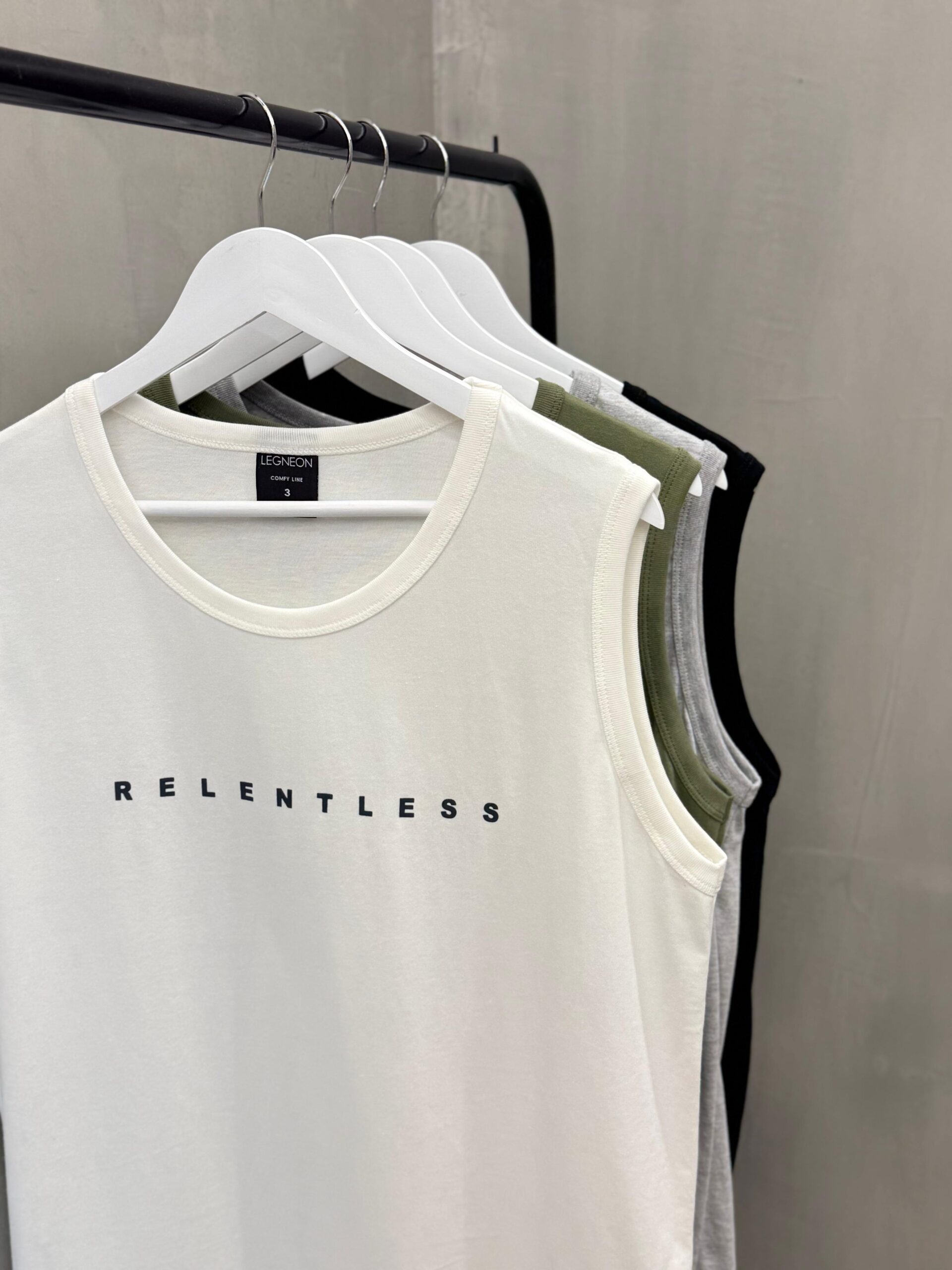 Remera sin manga estampada en tela Jersey algodon 100%, con cuello ribb.