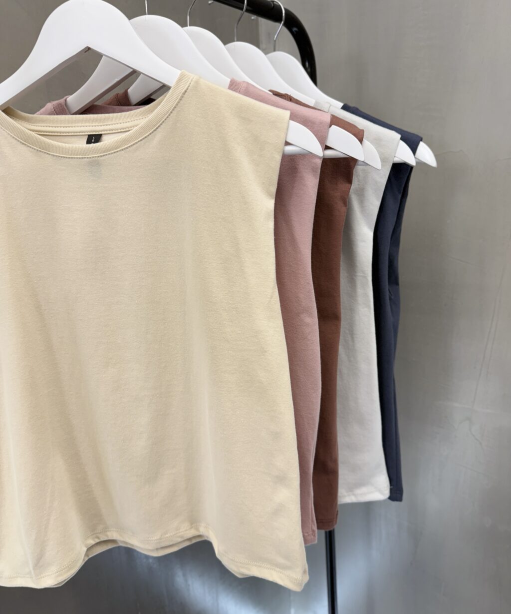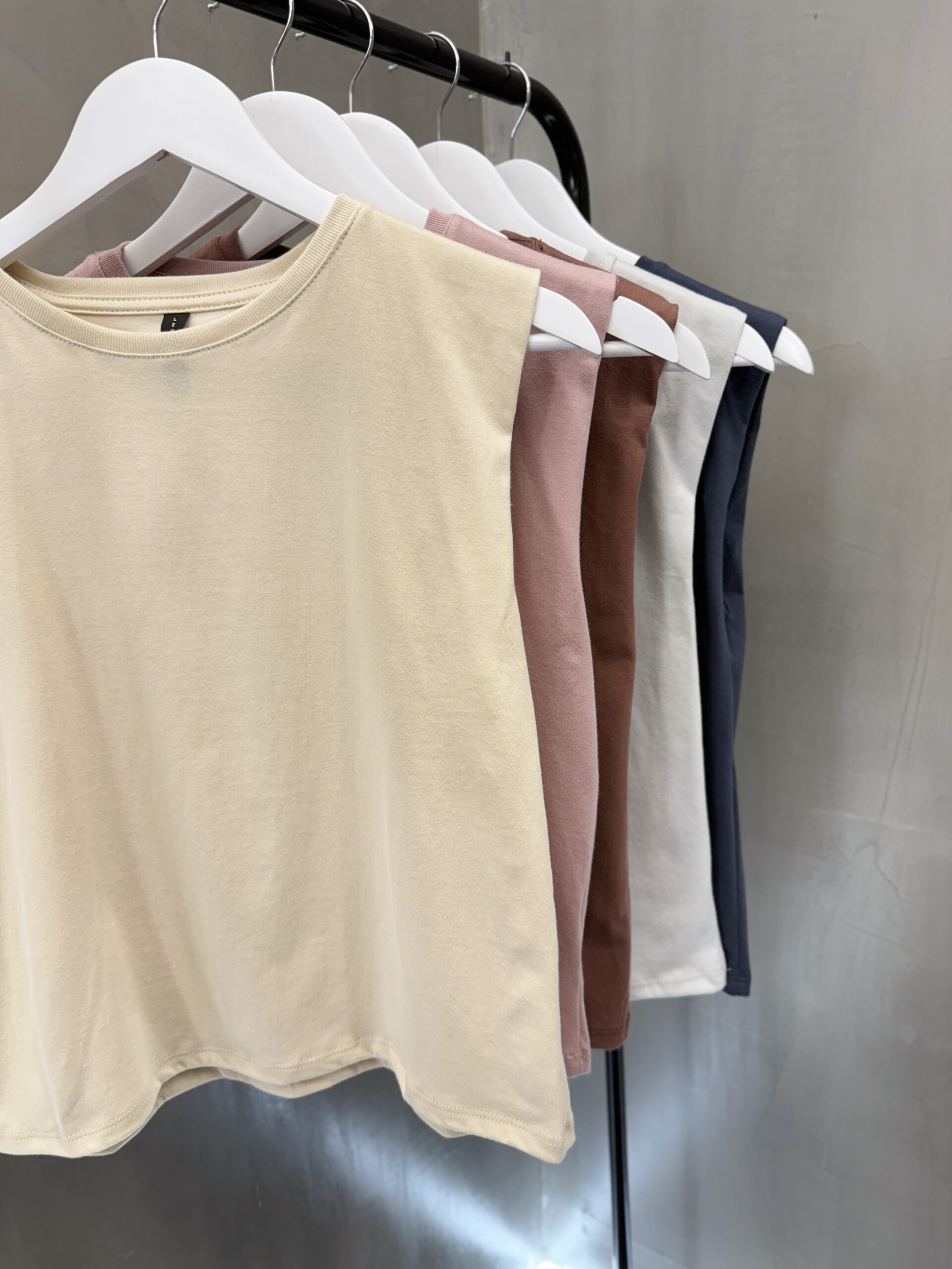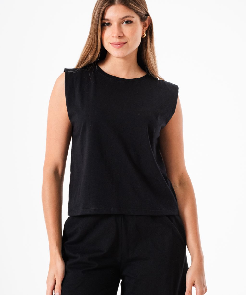 Remera sin manga en tela Jersey 100% algodón, cuello redondo