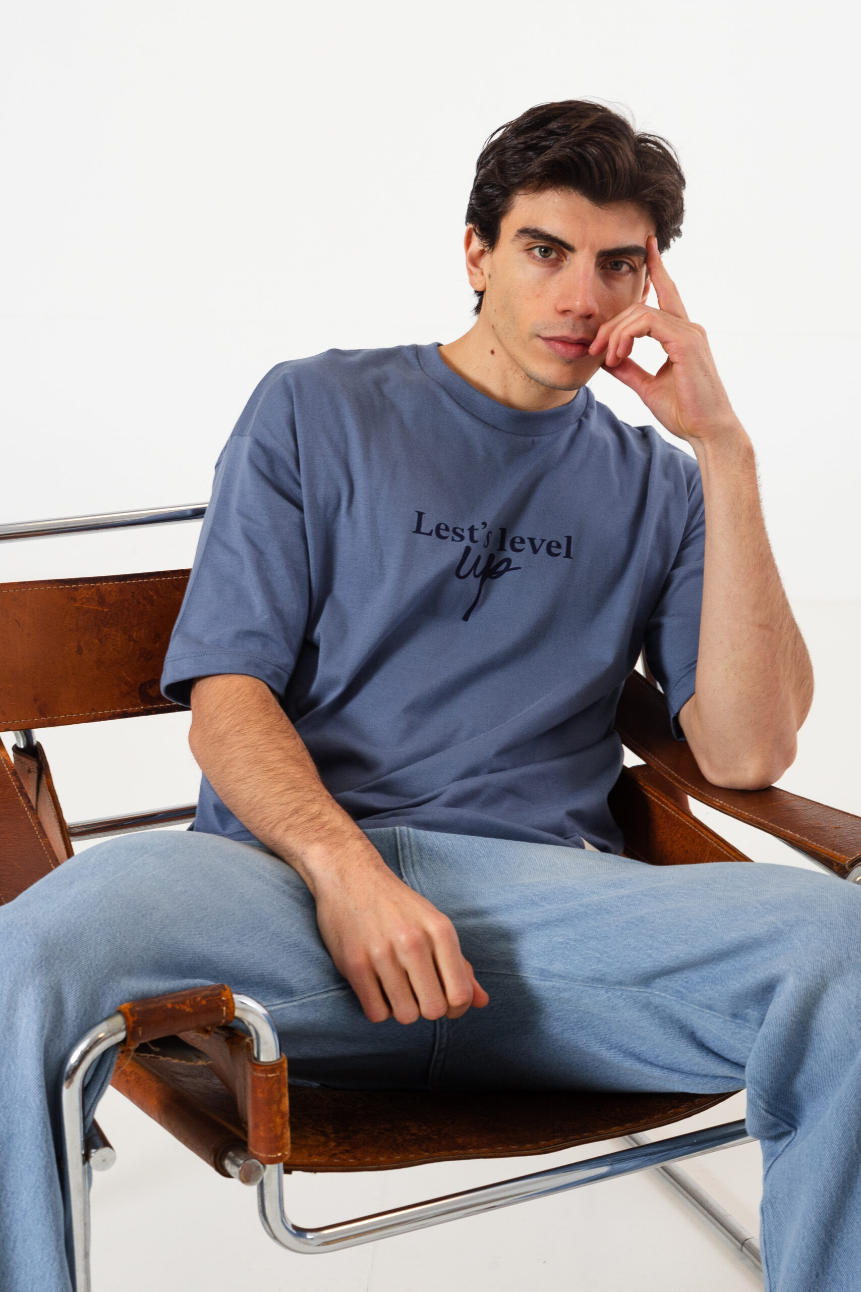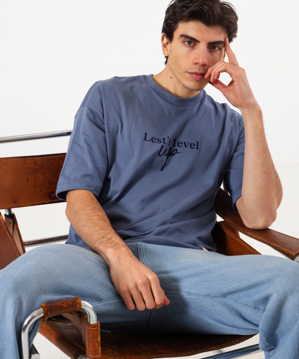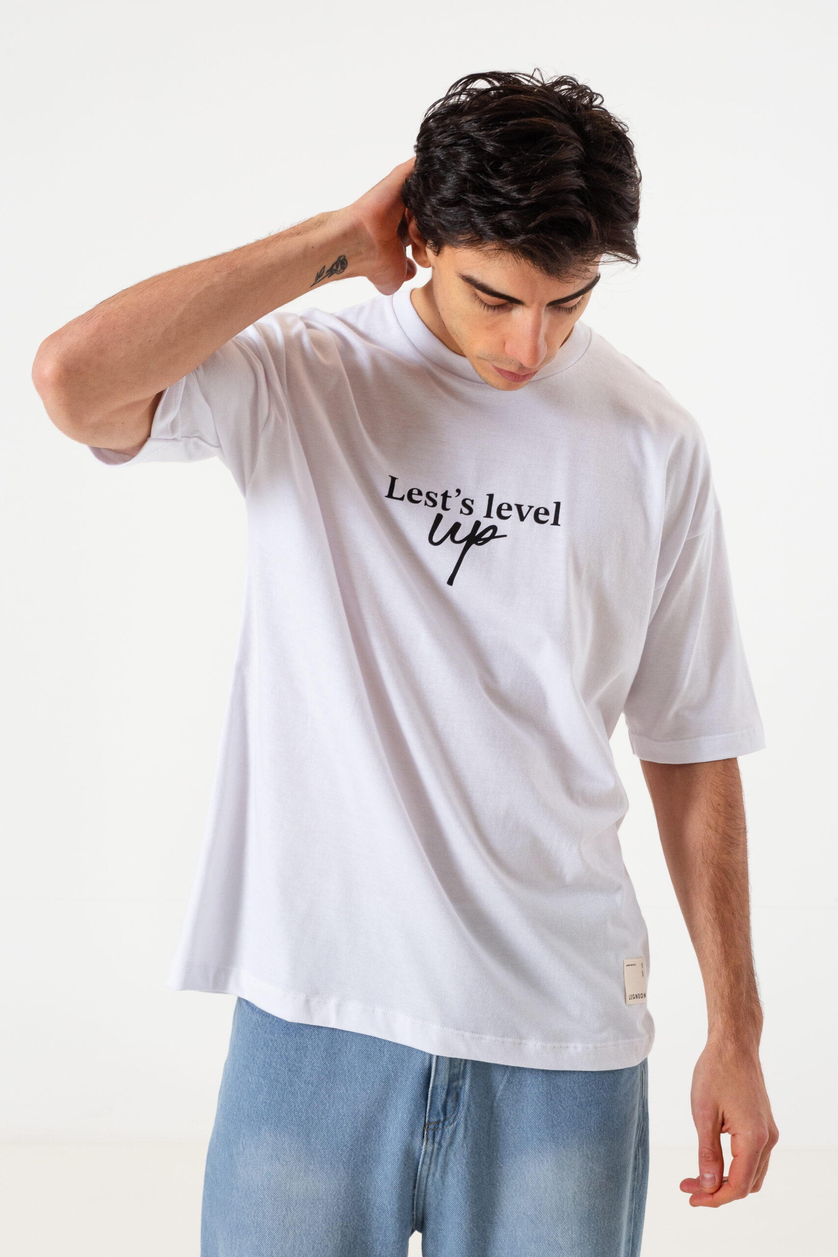 Remera OVERSIZE en Jersey algodón premium, tiene cuello en ribb. Con estampa.